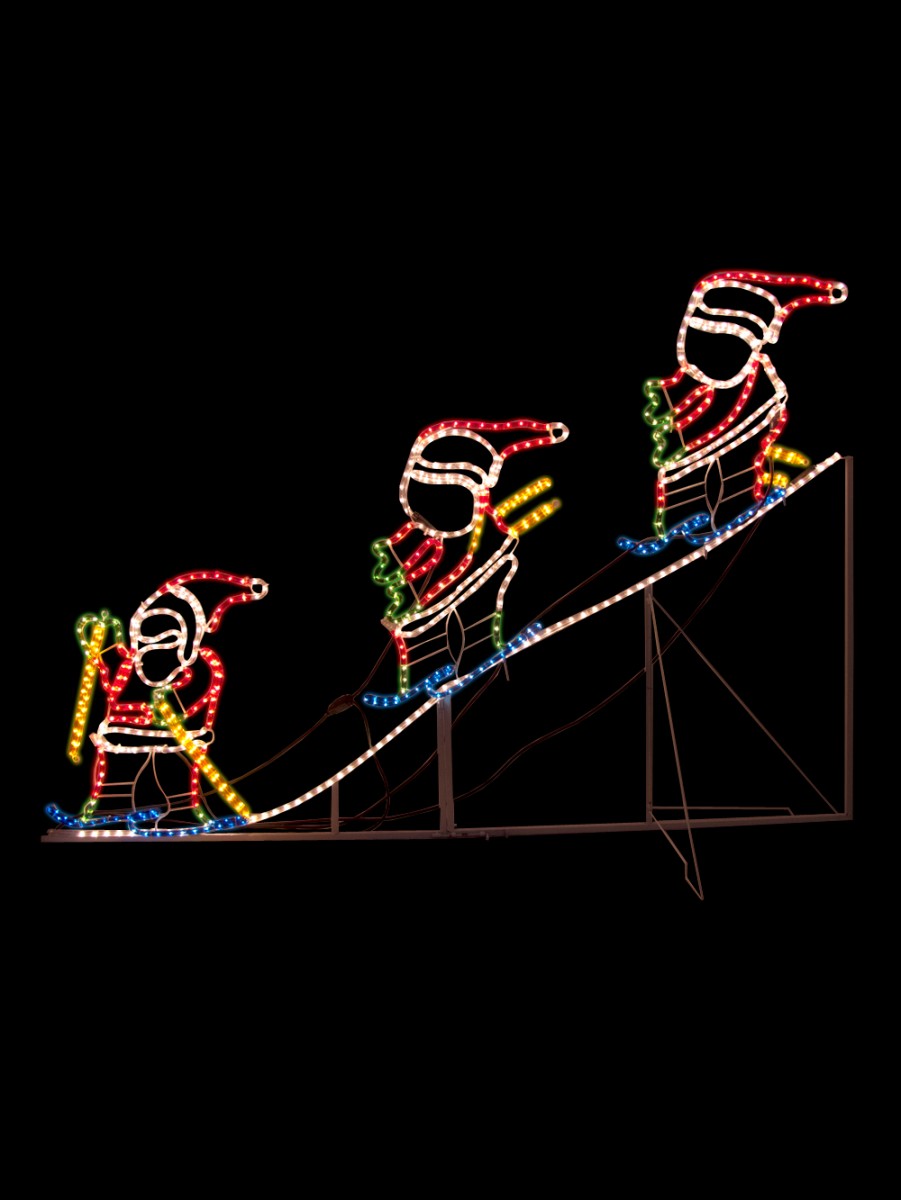 Our adorable and funny Santa Skiing Downhill will give you hours of enjoyment as you watch this lighted ornament take him from the top of the hill to the bottom. Three images of Santa appear on a lighted slope and alternately light up, giving the impression that Santa is moving.