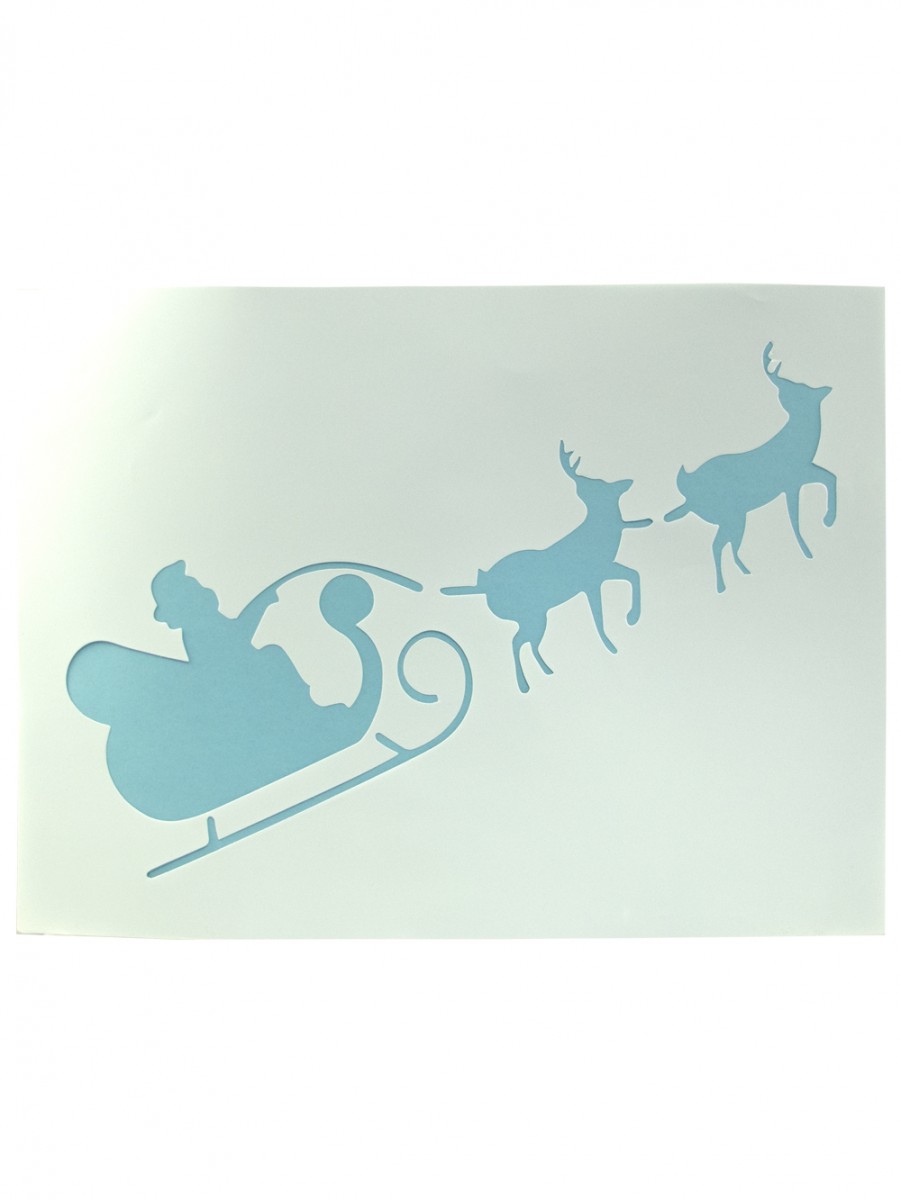 Get your whole house in to the holiday spirit! Add a touch of Christmas to your front windows with this stencil. Stencil shows Santa Claus driving a sleigh pulled by reindeer and can be reused multiple times to create a motif on your windows; or use it just once, year after year. Ideal use is for adding a touch of whimsy to �snow� sprayed on windows and other surfaces. Comes on a sheet that can later be used for convenient storage. Sheet measures 25 cm x 35 cm.