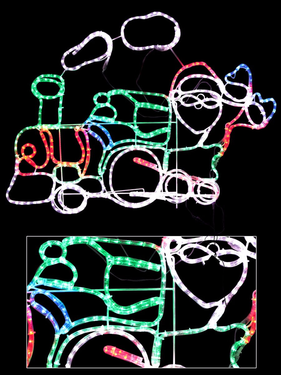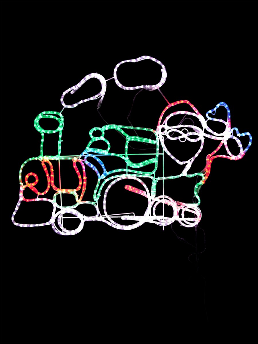 Choo- choo- cheer up the neighbourhood this Christmas! Bring a smile to the face of children and adults alike when they see your beautiful Christmas lights this year. This lighting display shows a multi coloured LED Santa Claus driving around a magical Christmas steam engine will add a whimsical feel to any tableau. Multicoloured LED bulbs are enclosed in a clear rope tube. For an added touch this display includes multi speed flashing functions, including static mode. Suitable for indoor or outdoor use. Display includes a low voltage adapter to help conserve power. Dimensions are 1.2 m x 88 cm and it includes a 5 m lead wire. It is mains operated and complies with Australian safety and performance requirements.