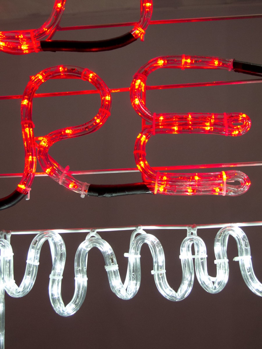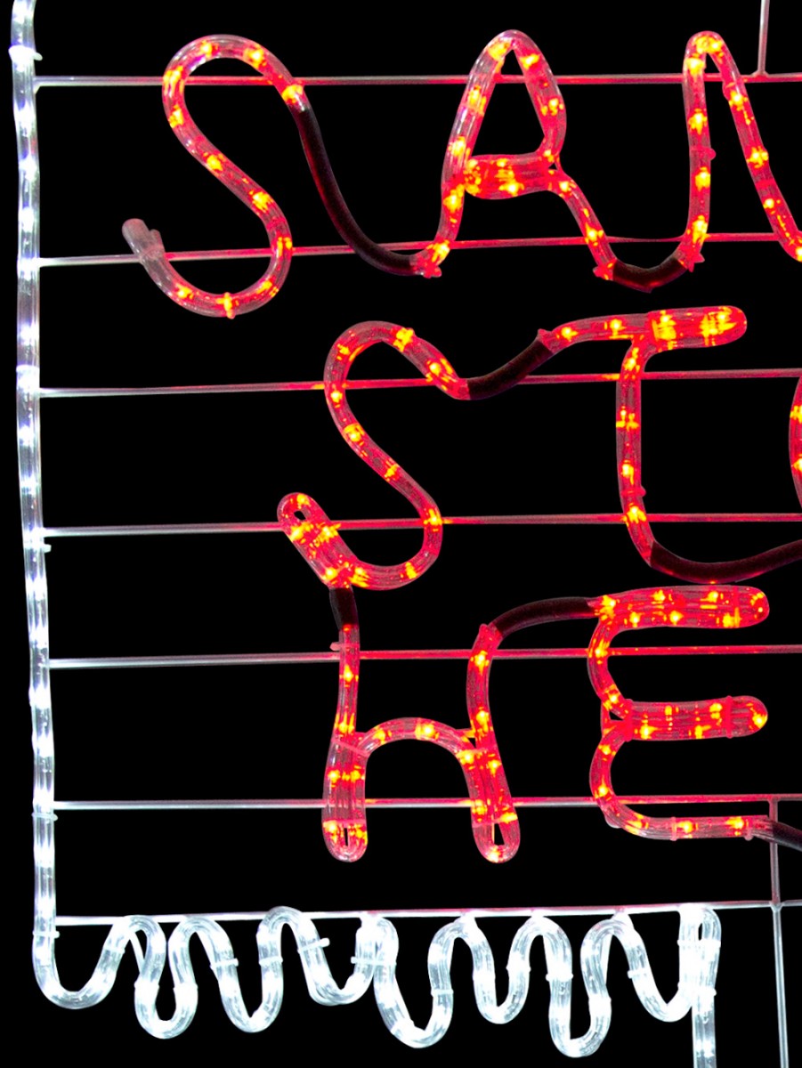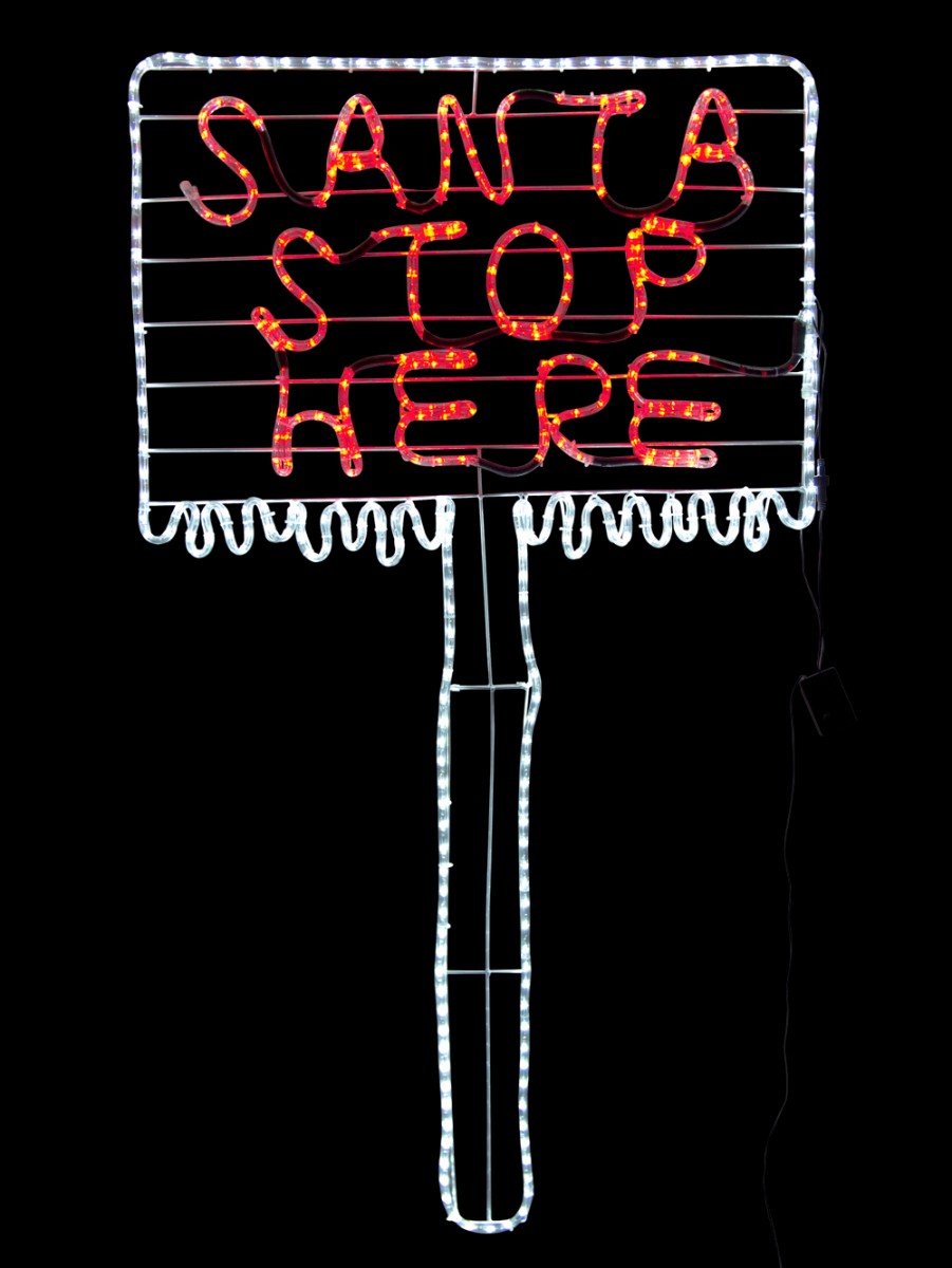 Pull out all the stops for Santa's arrival! This eye-catching 1.5m tall Santa Stop Here Sign Post LED Rope Light Silhouette is a show "stopping" and impressive addition that adds coolness, fun and excitement to any home, retail store, business space or event venue for the holidays.