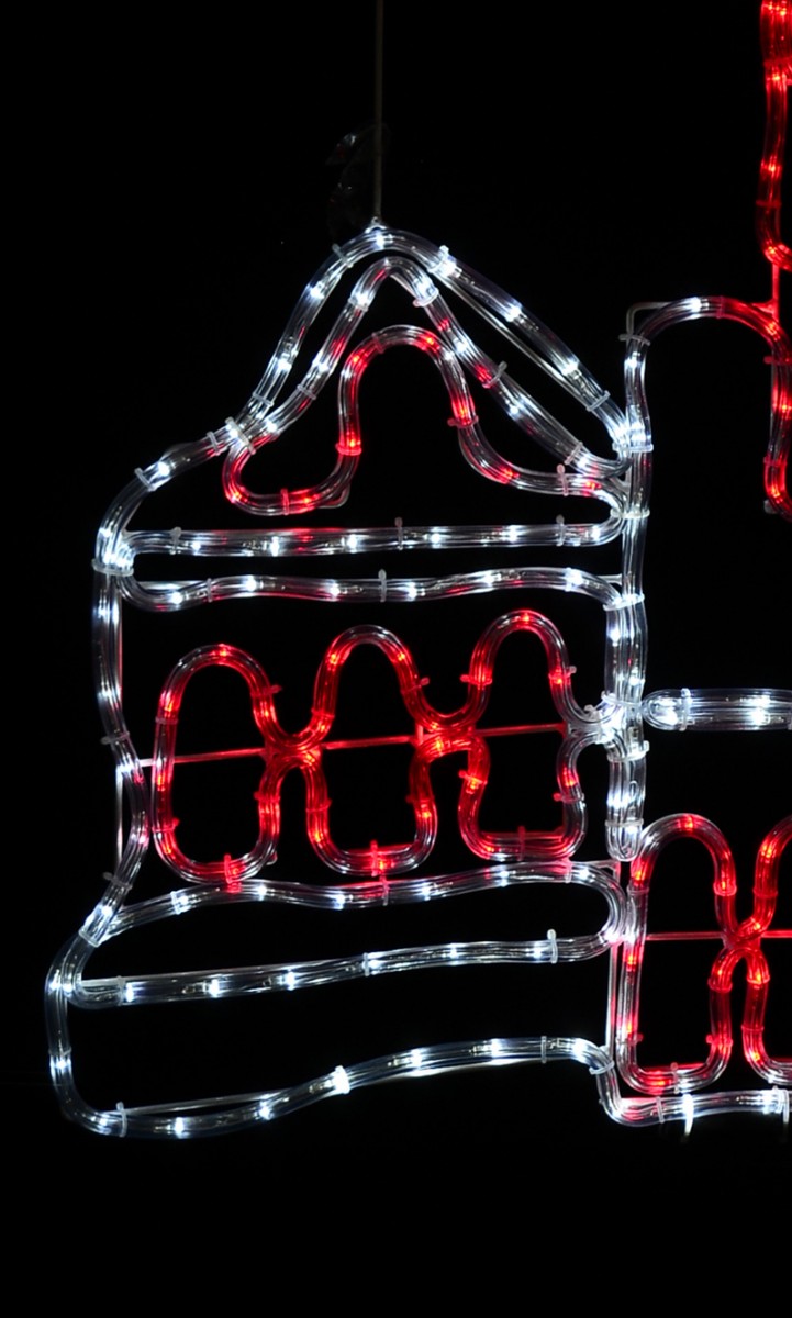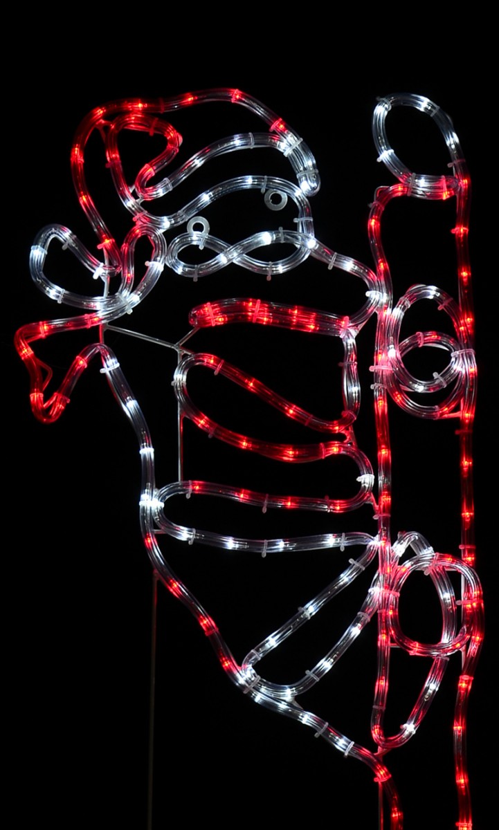 The rope light has an overall length of 1.3m and 50cm width and is interwoven on to a robust white frame to make wall mounting easy. The 3m lead wire allows you to use this in a variety of places and it is attached to the mains operated BS plug that must be mounted indoors or in a waterproof socket. The LED bulbs attached are energy efficient for less power consumption and there is a flashing function & controller for easy adjustment. The red and white light flash effect makes it look likes Santa's actually moving. So smile wide as it ships worldwide though it is sold individually. This product complies with Australian safety and performance requirements.