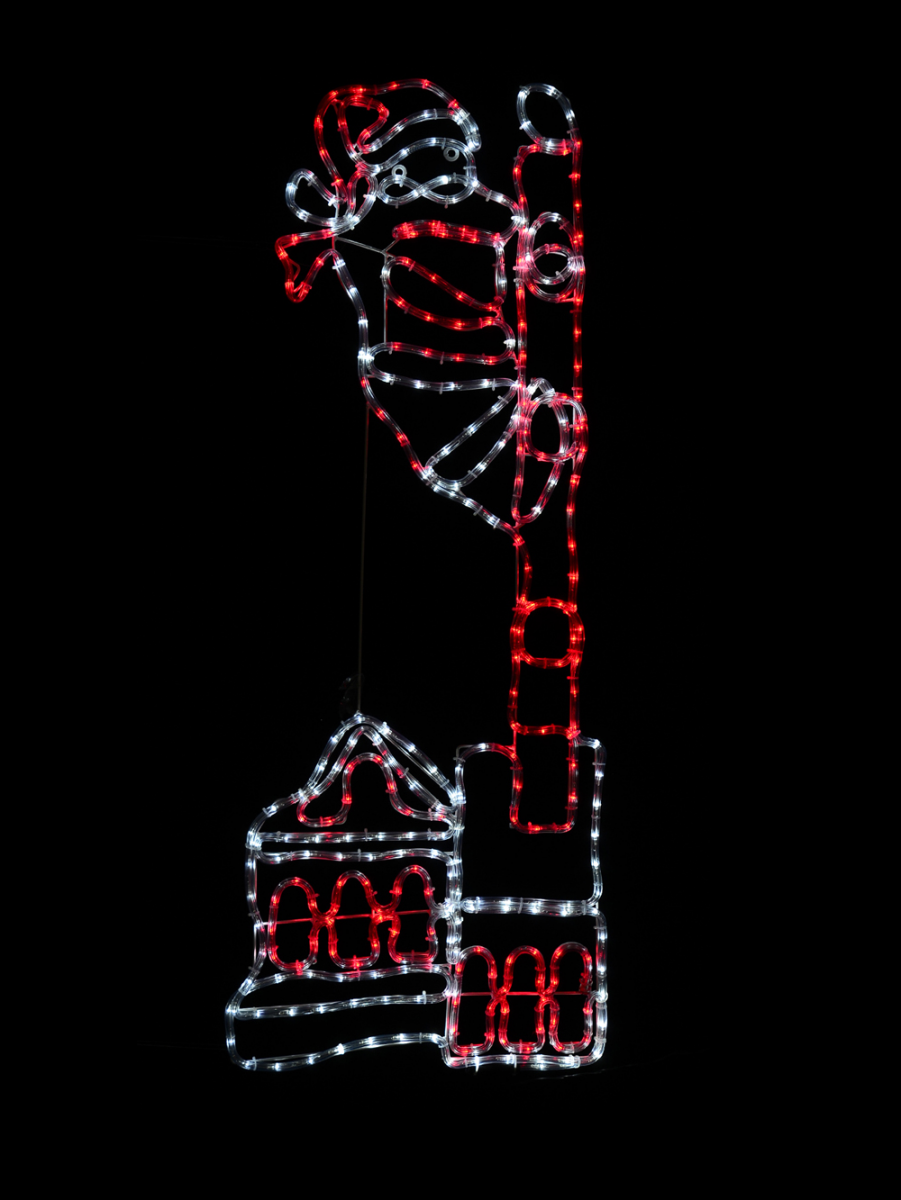 Catch Santa in action delivering gifts in old fashion with this 'Santa up the Chimney' Rope Light. This eye-catching silhouette features a plump Santa climbing up a long slim open chimney wondering if he can go down it!