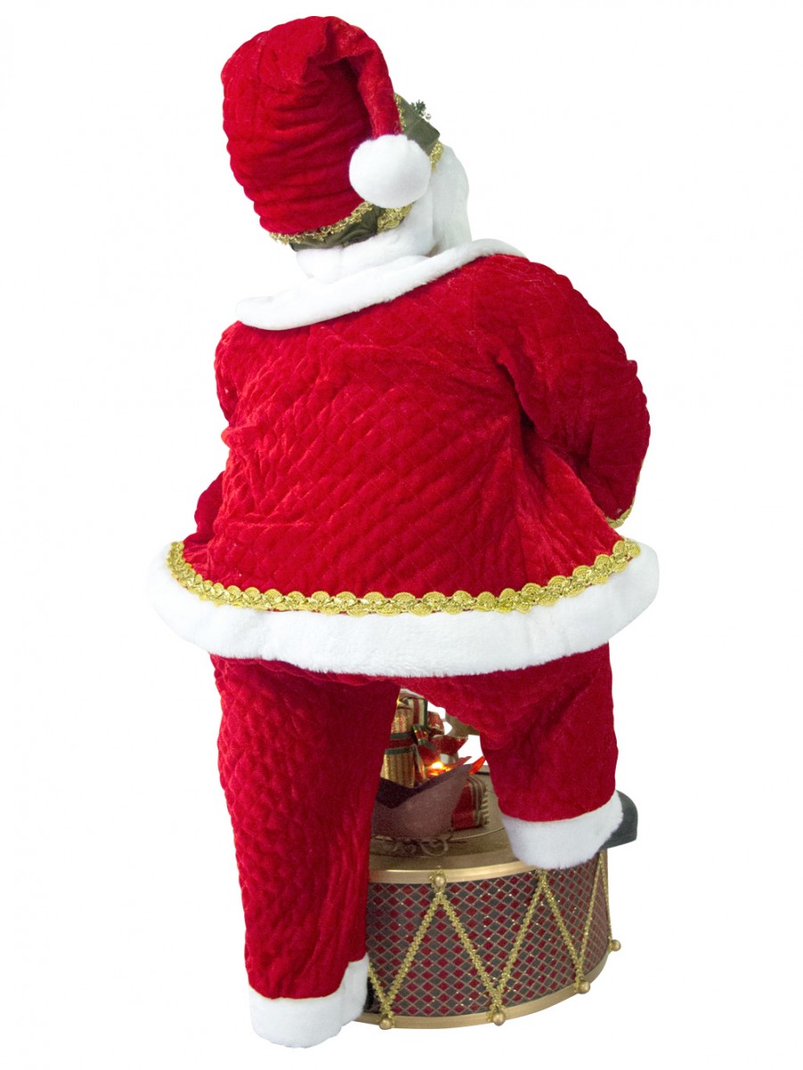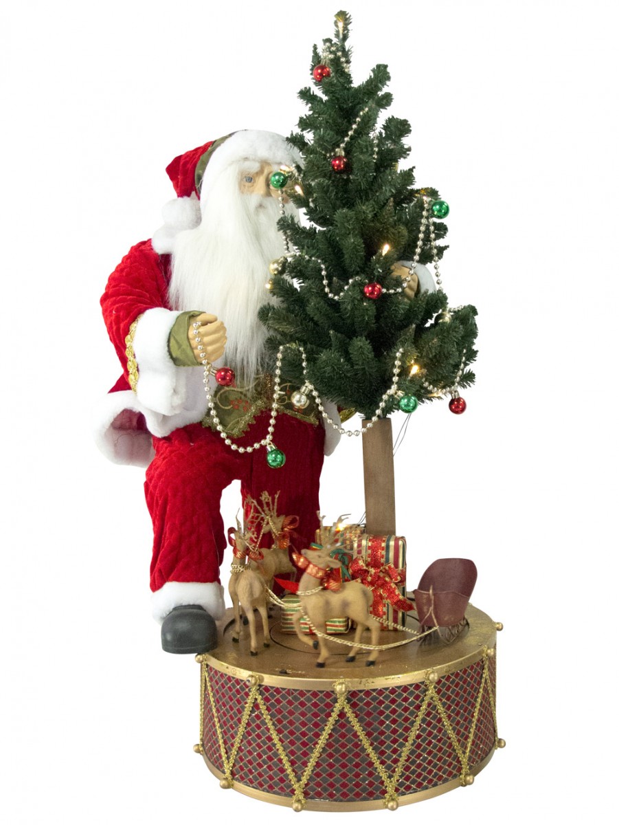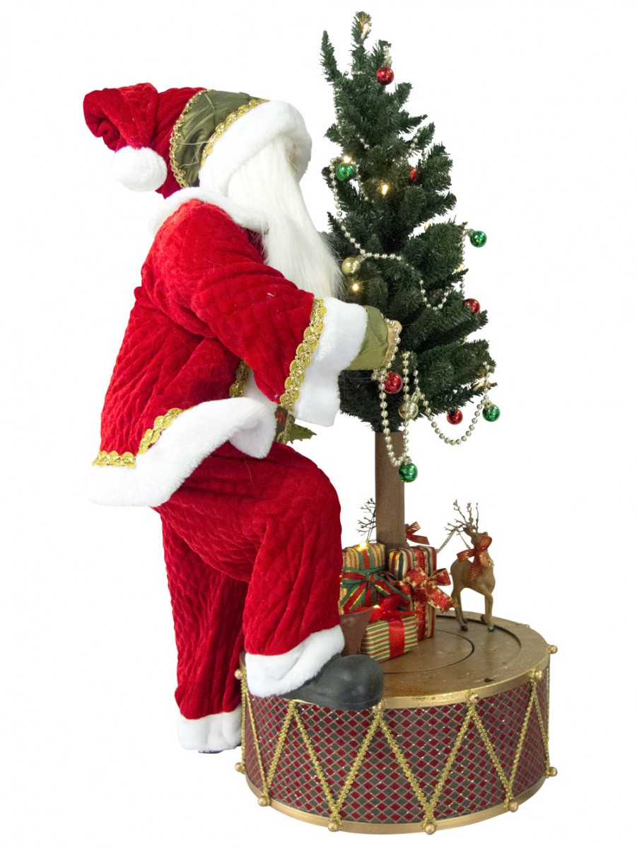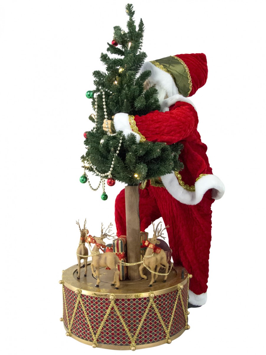 You will see Santa Claus wearing the famous red dress and sporting the white beard with an additional decoration of a gold braid which is placed on an animated drum. The miniature doll is placed on reindeers and tin sleigh which rotates around a Christmas tree decorated with LED lights and trinket garlands. There is an on/off switch which you can use to play the jingle bell tune which plays for a long 15 minutes after which the music is automatically turned off. The product complies with Australian safety and performance requirements, so you know it is safe to use in Australia. It is a great gift you can give away on the Christmas.