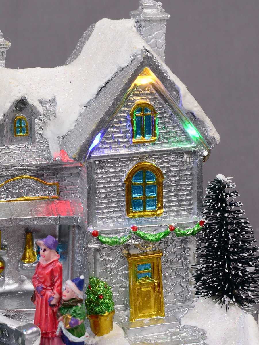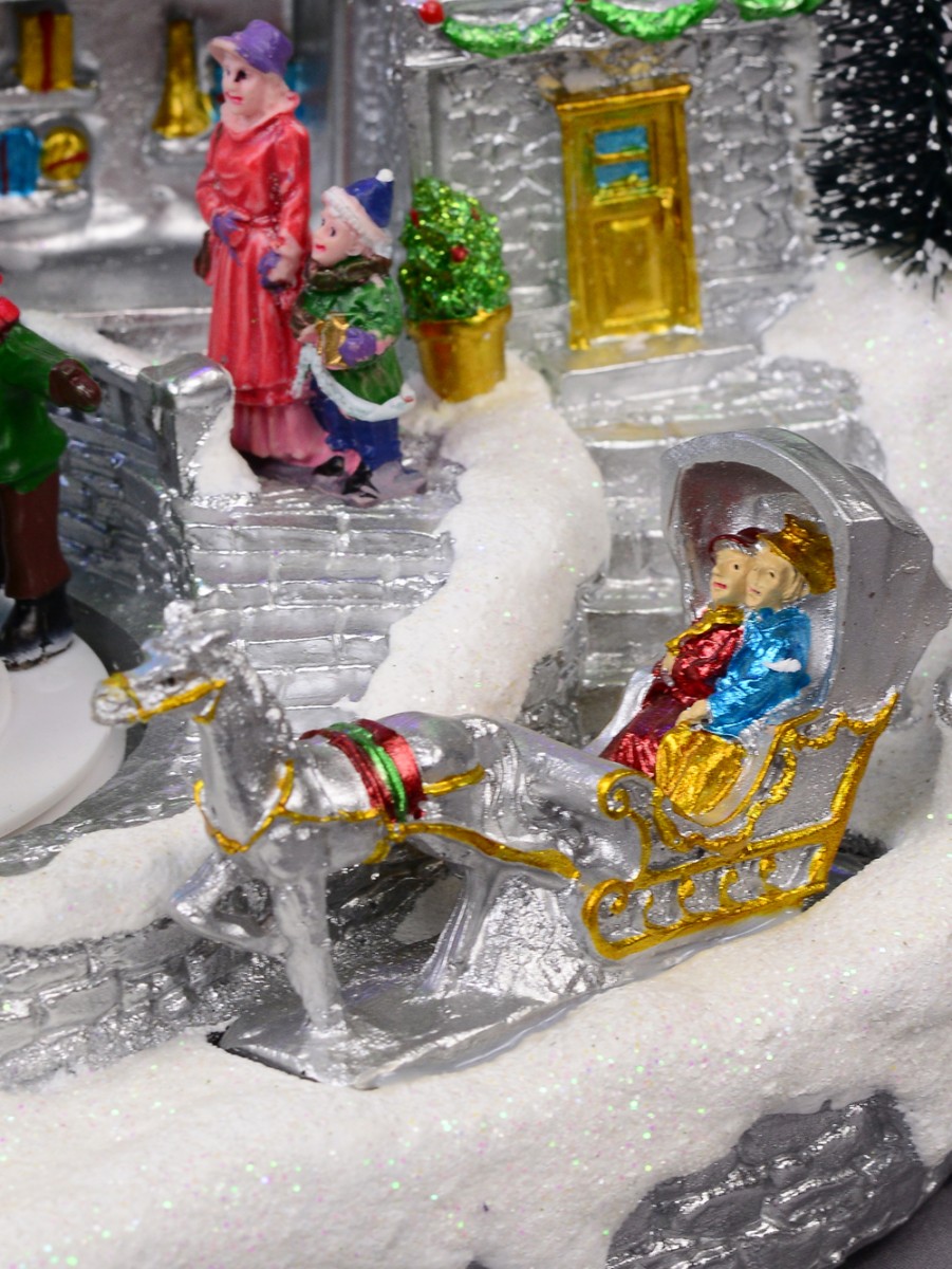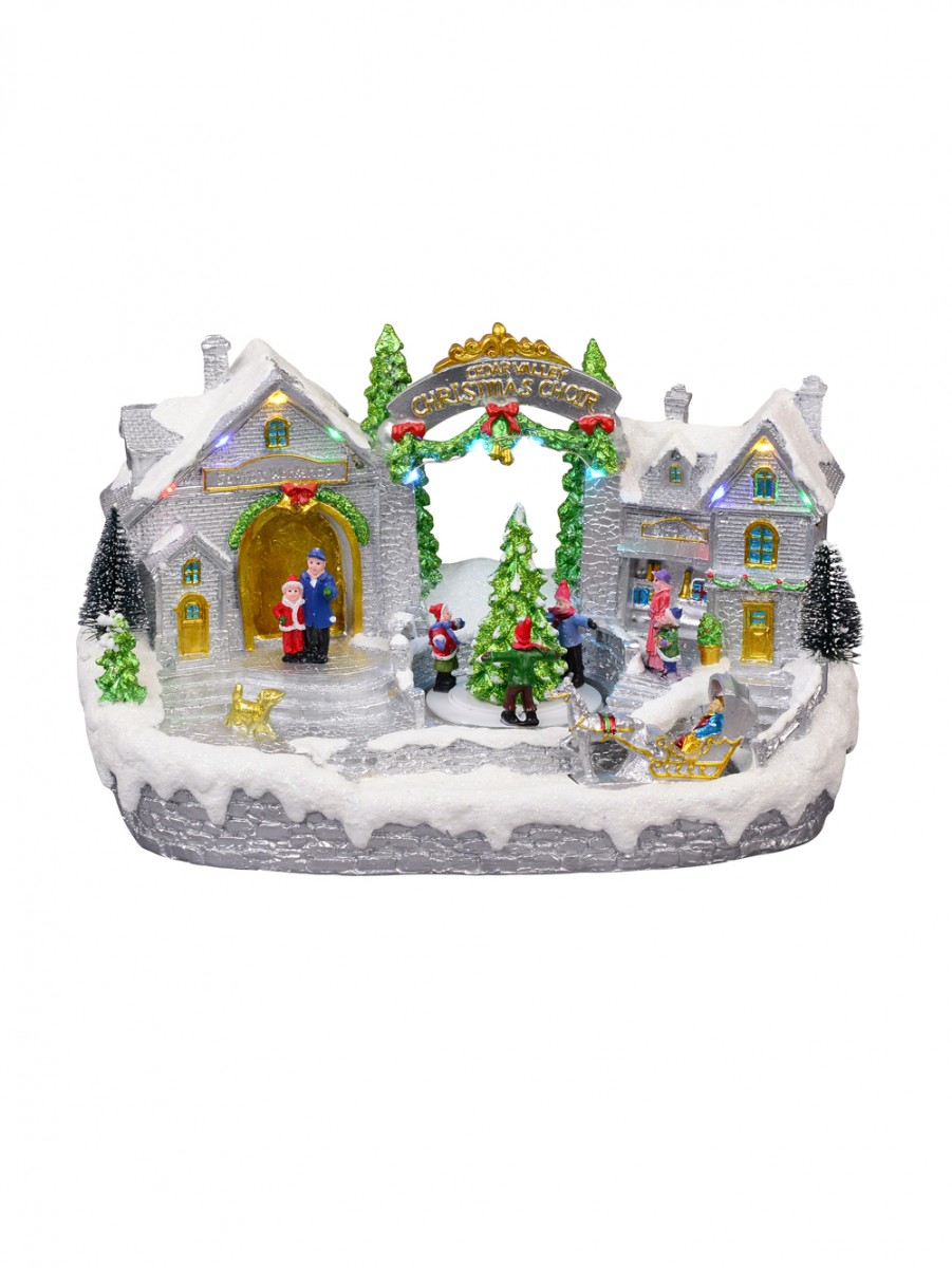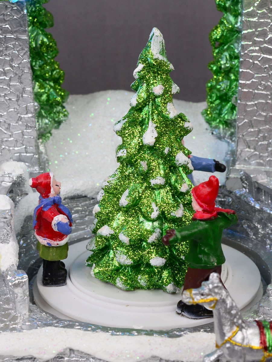 Enrich your home decoration with this skilfully depicted version of Santa's workshop. The Illuminated & Animated Santa's Workshop At Cedar Valley Scene is a table top ornament and gift item which depicts the dwelling place and workshop of the world famous Santa Claus. Of course, it features Christmas colours of gold, red, green and white alongside other colourful additions.