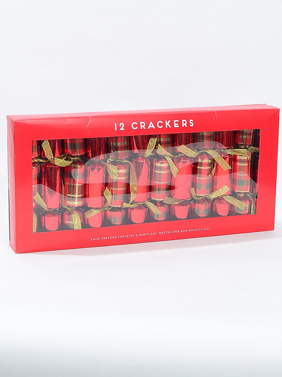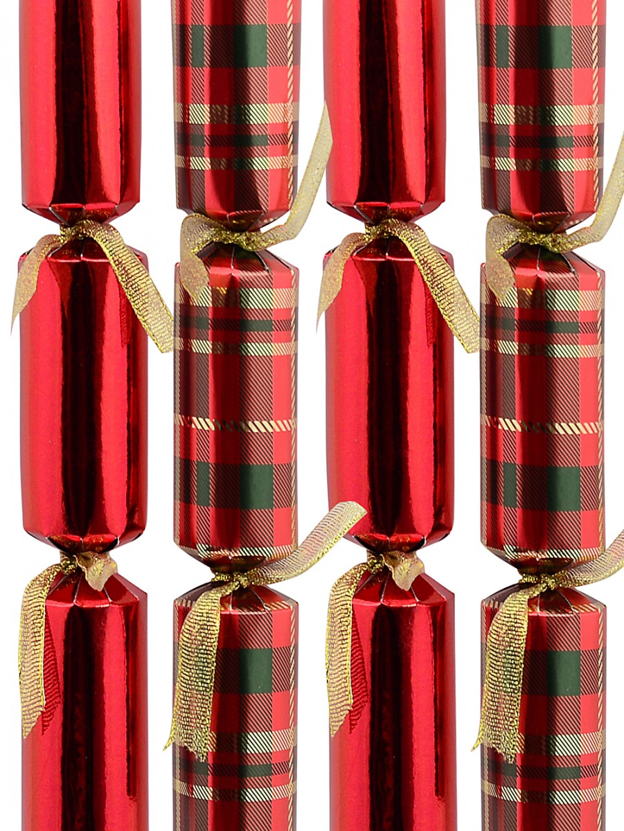 Shiny Red Plain & Tartan Look Christmas Cracker Bon Bons - 12 x 22cm