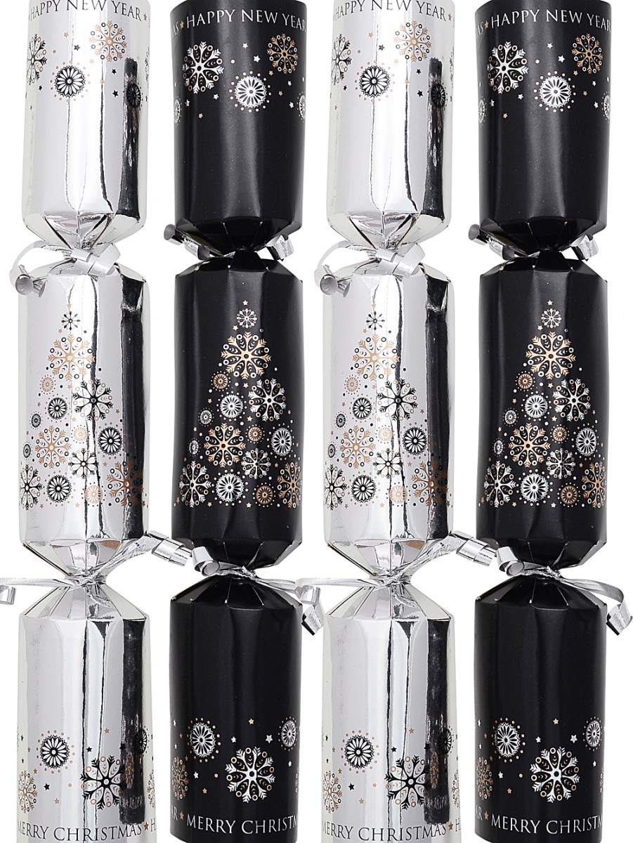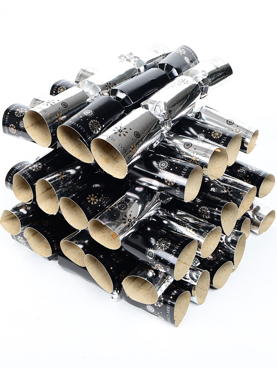 Shiny Silver & Black Snowflake Christmas Tree Cracker Bon Bons - 100 X 28cm