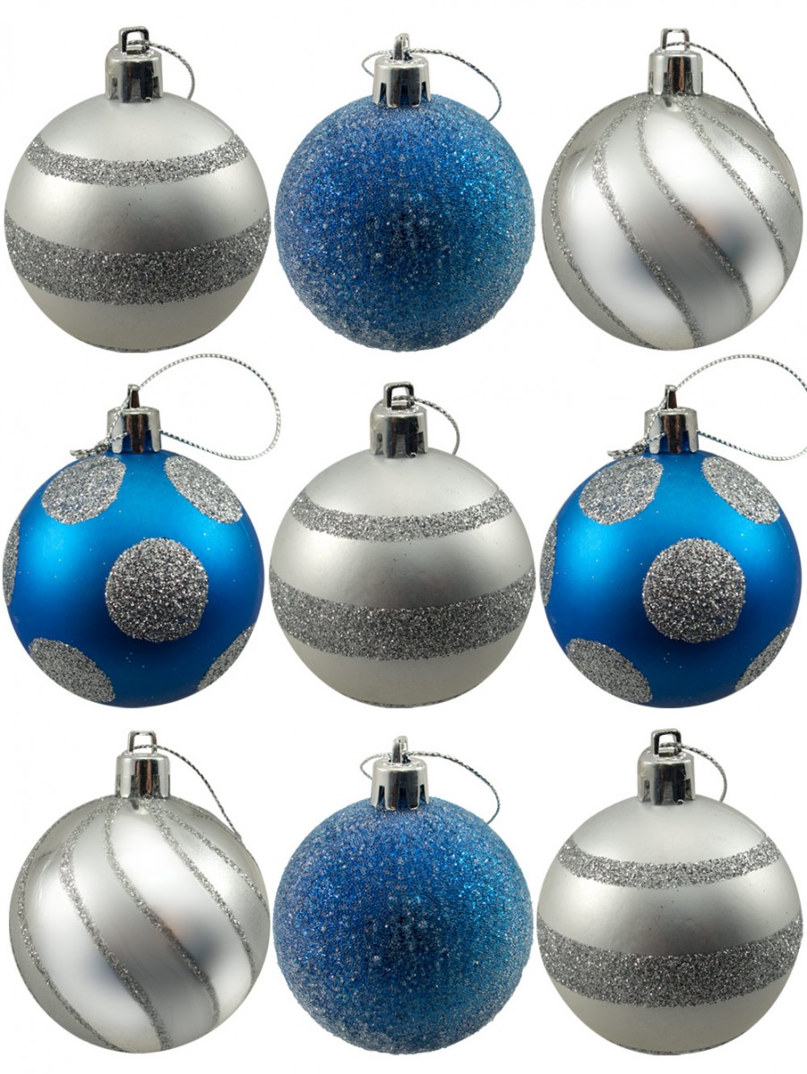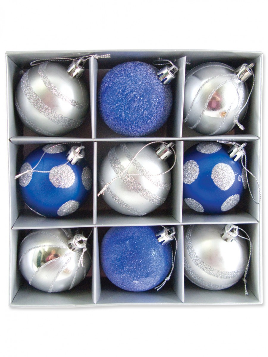The best holiday decorating ideas start with Christmas baubles! Starting the yuletide decoration is perfect with the Baubles - Silver & Blue With Assorted Patterns - 9 x 60mm. This ornamental piece could definitely deliver the most enticing and celebratory effects for the holidays. It could instantly accentuate simple Christmas trees. It could even embellish different areas or corners of various venues such as offices, homes and so much more. It even makes a practical and lucrative gift idea with the holiday theme. This versatile package is a sure winner! It comes in silver and deep blue colours. The baubles have 60mm size measurement. The lovely ornamental accents are made from light yet durable materials for versatility and style. Each bauble is made with varied designs and deluxe patterns with eye catching finish. The lot is a combination of metallic, matt and glitter designs. It has hand painted glittery silver patterns with cap and cord.
