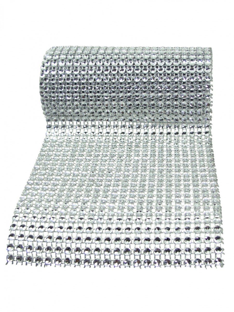 With our silver diamond wrap decoration that has rows of reflective plastic diamonds, you can add a touch of brilliance to any project! Add texture and flair to a scrapbook cover and its pages, handmade greeting cards and more with it or use it to embellish trees, vases, glass votive holders and even table runners for instant glam!