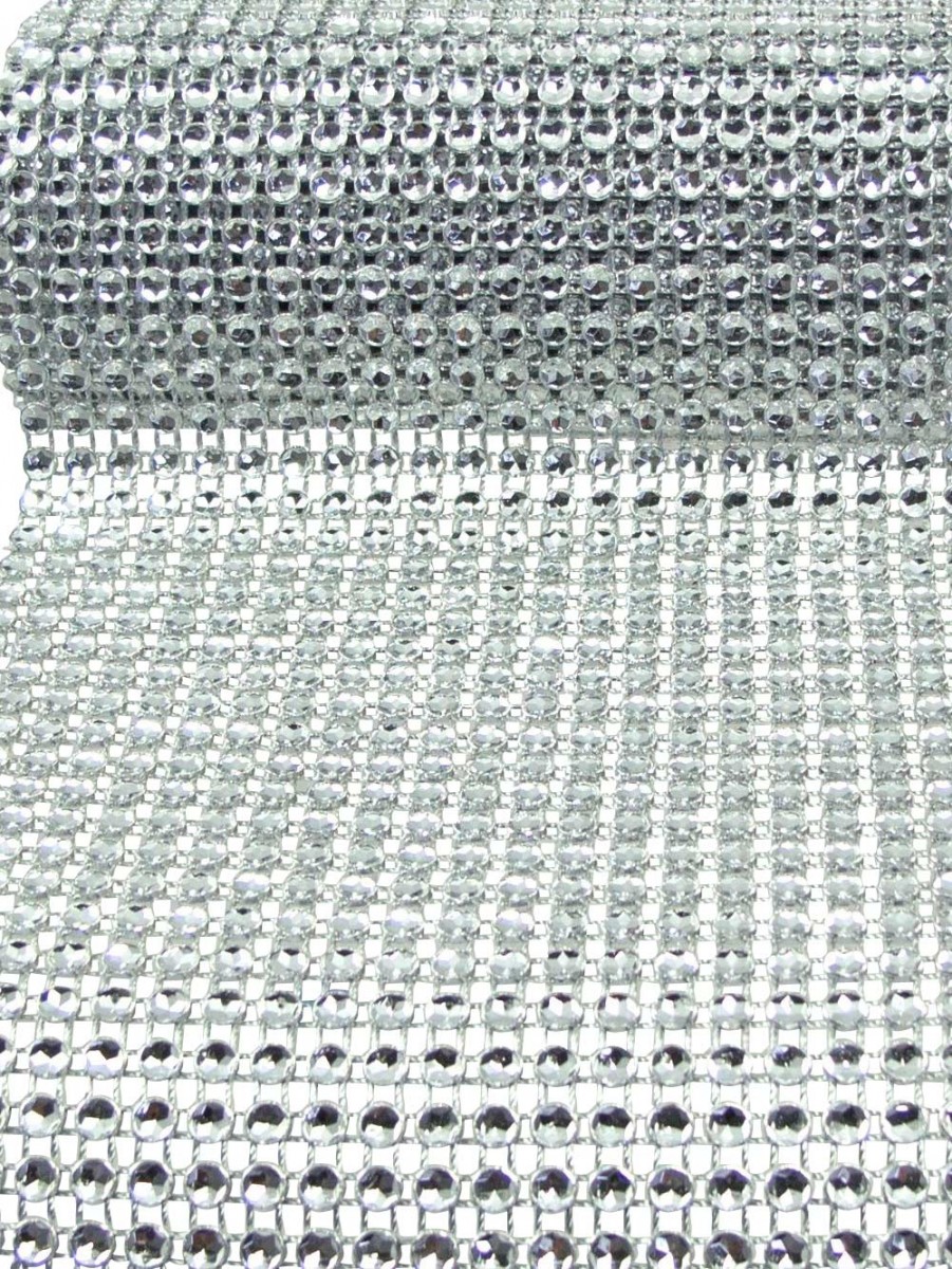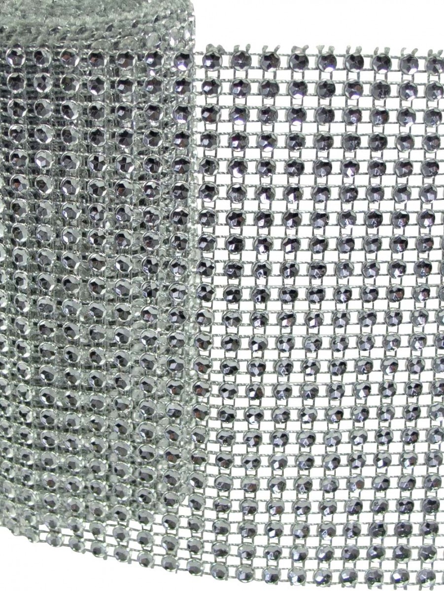 Adopt the versatility of this unique adornment for festive holiday, party, event and get-together. The strong nylon mesh on which the diamond-like impressions are attached is flexible enough to easily cut into diamond shapes, perfect squares, long ribbons or simply trimmed to the desired length. Use this mesh wrap to enhance any pillar, vase, keepsake, favour or wire form and make bows for gift packages, wreaths or holiday decorations to stand out! It can be easily attached using double-sided tape, twisting wire clips or sticking glue to a multiple of items.