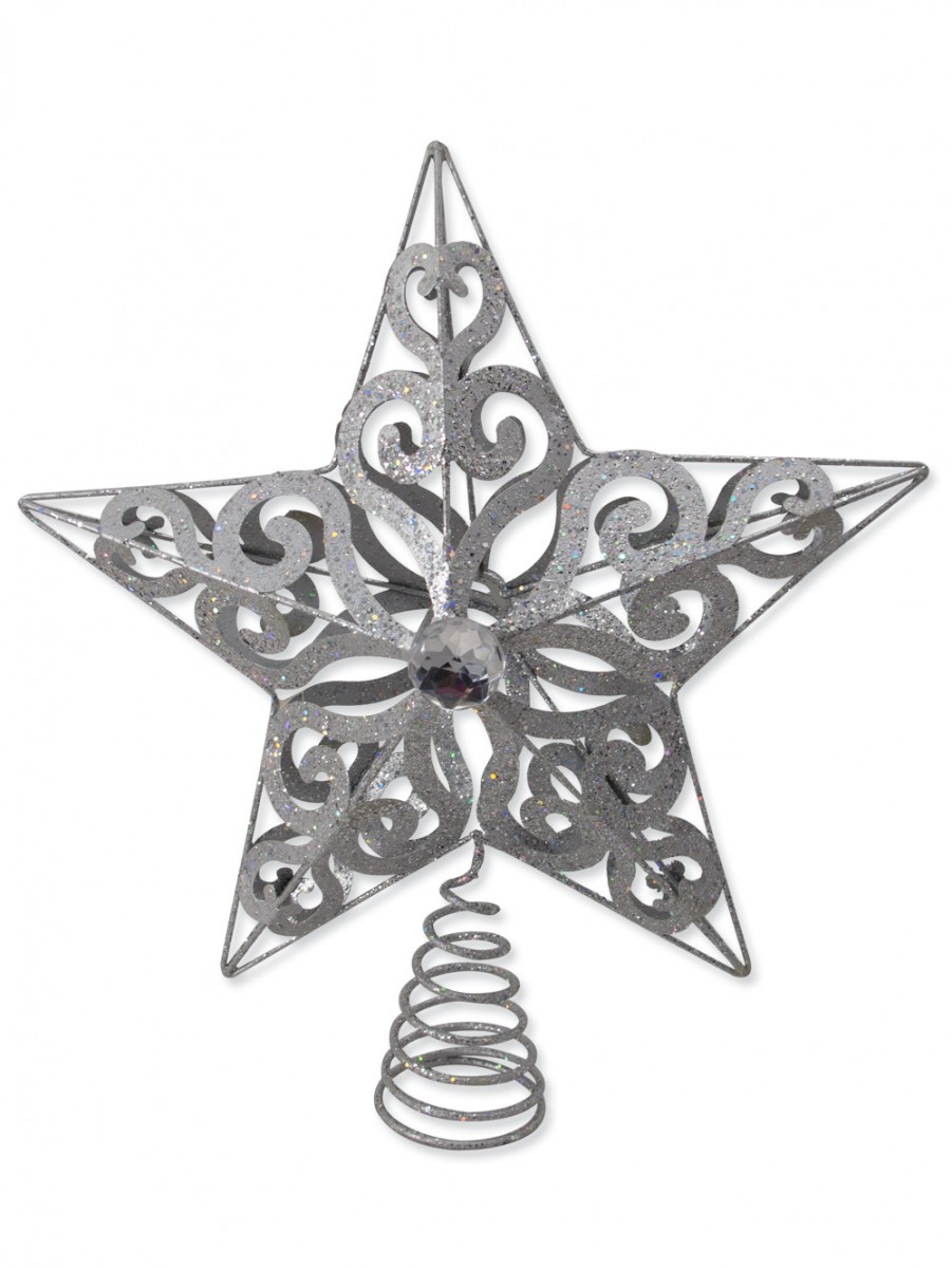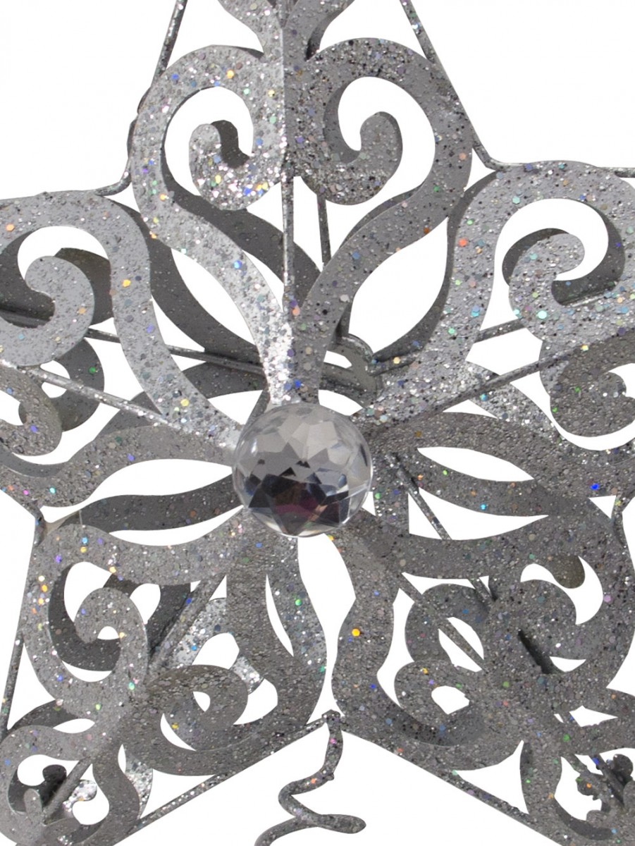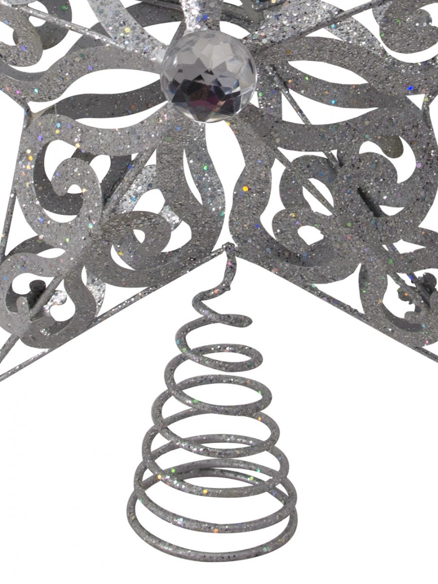 Putting on the Christmas tree topper is like signifying the start of the holidays. It's a wonderful moment when you pull out the topper from its storage place and reminisce about the stories of Christmas past before placing the the ornamental decor in its rightful place. Sure it's in a prominent place so it has to be pretty, but it's because of the lovely moment that comes with it that means the tree topper has to be fabulous. This Silver Filigree 3D Star Tree Topper is just what you want on the top of the tree and what you would want to pass down to the next generation. The silver wire star surrounds a 3D filigree swirl design with a crystal-type gem at the center. On the bottom is a silver coil that helps the star stay securely in place without tipping over. Thanks to its lovely silver color, it can complement a Christmas tree with any color theme whether it's multi-colored or metallic.
