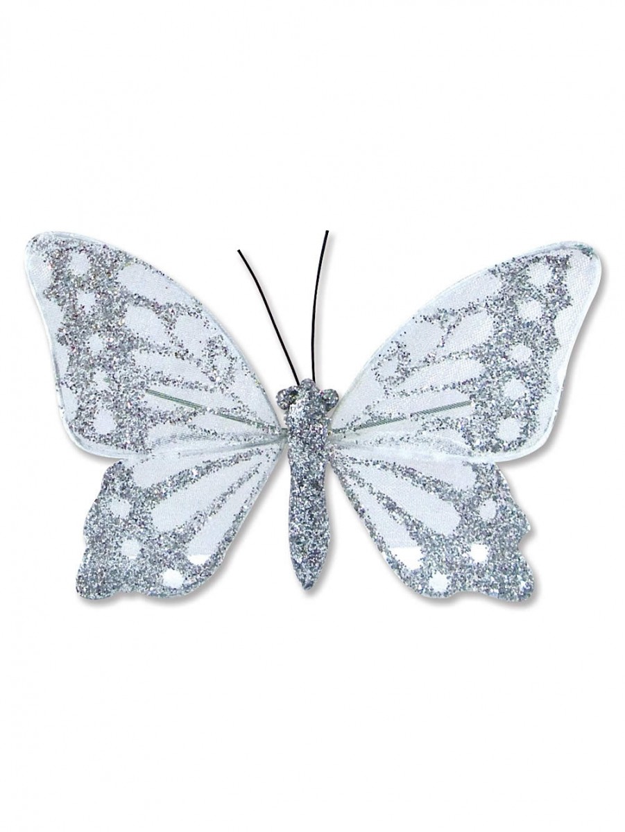 These elegant butterflies have been carefully decorated with a shimmery silver paint, ensuring that they'll catch the rays of your Christmas tree lights or your table-top candles without fail. Each butterfly has an exquisite, complex pattern marked out on its wings, and features an entirely silver-coated body with two pert antennae. Measuring 12 centimetres in length, they're the perfect size for catching the eye of your visitors or family, but are subtle enough that they won't overwhelm your other decorations. This set includes six butterflies, allowing you to be as creative as you like with your Christmas decorations mixing or matching for your Christmas theme as you wish. You can use them as a feature for the top of your tree, or dot them around your tree at intervals. You can attach them to your door wreath, or arrange them over your Christmas table for that extra sparkle. They should also look sumptuous attached to your gifts or Christmas cards. Why not add a bit of soft, dreamy elegance to your decorations this year with this beguiling set of six silvery butterfly decorations?