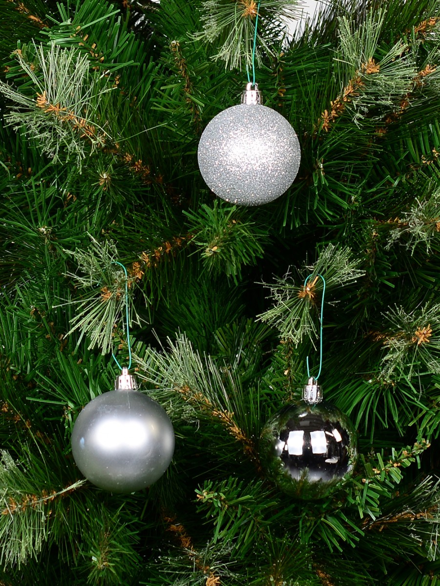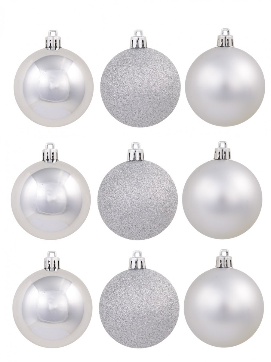 The Silver Matte, Glitter & Shiny Baubles is a special Christmas ornament that exploits the appealing brilliance of silver colour. Each and every piece in this pack of 12 is ornamented in different shades and patterns of silver such that it contains matte silver coloured baubles, glitter silver coloured baubles and shiny silver coloured baubles.