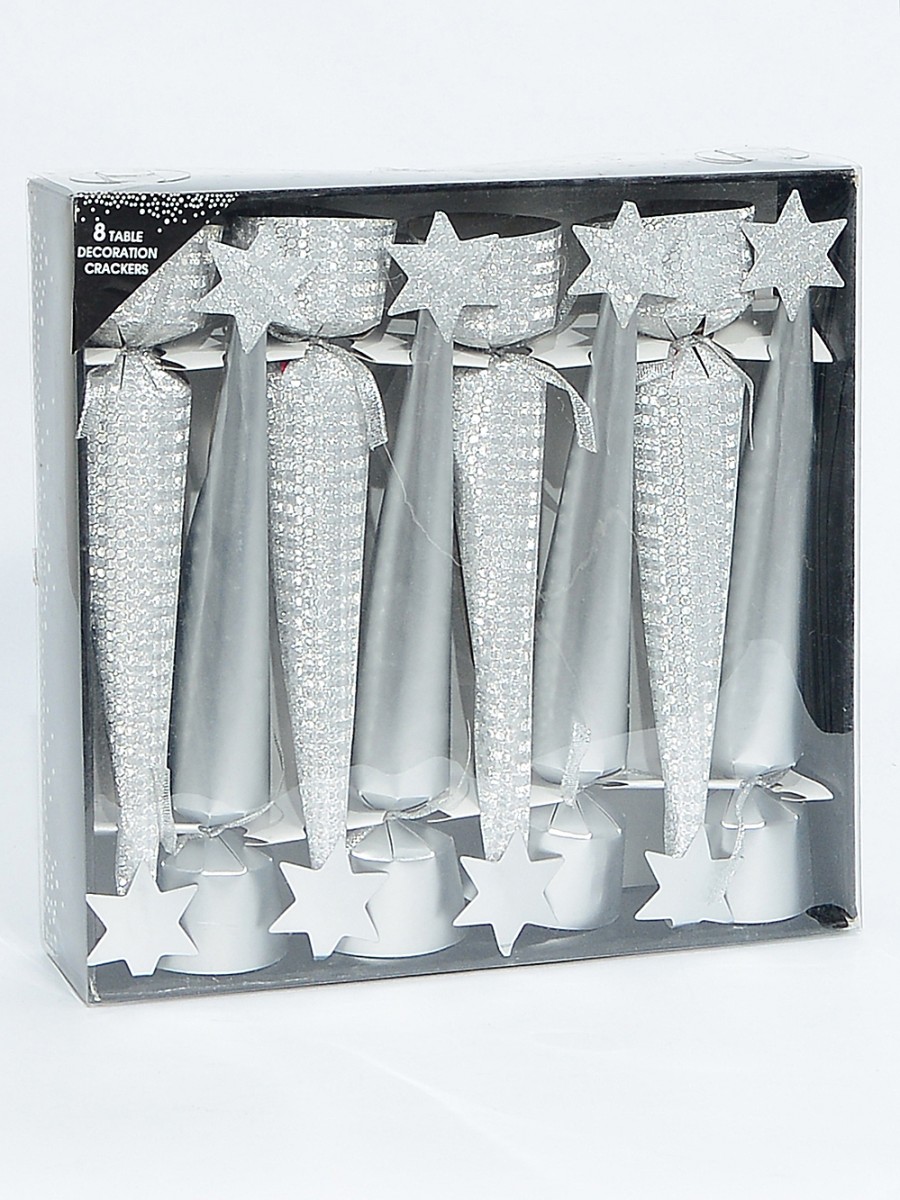 Consisting of eight cute cone shaped Christmas crackers, the Silver Matte & Shiny Circle Pattern Christmas Tree Cracker Bon Bons has become a frequently loved choice and a fast selling Christmas item ever since it was added into our classic collection of Christmas crackers only a few weeks back. When snapped open, each of these cracker contains a hat, snap, toy, and a joke that would make everyone's day. The bon bons are made in the same design with little variation in decorative silver themed finish.