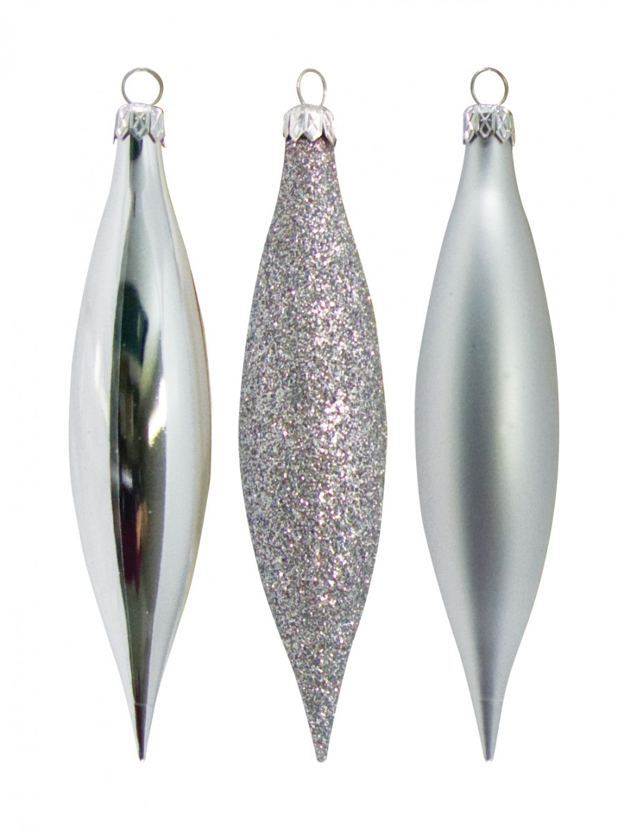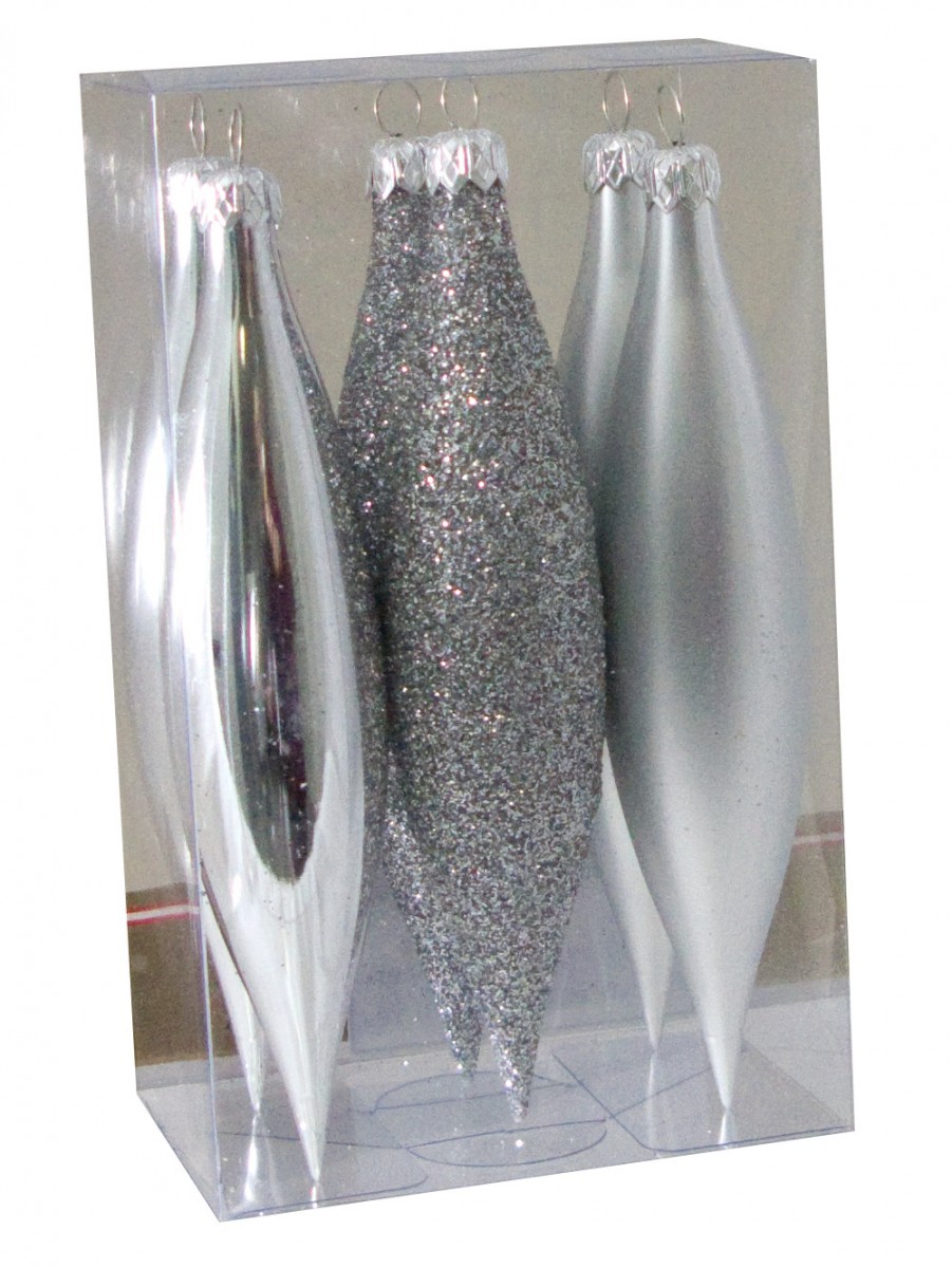 This six-set of pine cone decorations features three different styles. Although each pine cone decoration is 14cm in length and features a curved design with a needle tip, each of the three styles features a different, eye-catching finish to set it apart from the others. With this set of ornaments you'll receive two gleaming glossy pine cones, two elegant matte-finish pine cones, and two pine cones dusted all over with silver glitter. These Christmas decorations are made from a light-weight plastic to reduce the risk of breakage. They also feature a silver-hued metal cap with a hanging loop. Although the Christmas tree is a superb place for these pine cone ornaments, their sleek and streamlined design makes them perfect for a variety of uses. Consider stringing them along a piece of twine or ribbon and using them as a modern wreath. You could also attach them to your gift tags or place cards, or string them up over the fireplace or mantelpiece. They would also make an excellent Kris Kringle gift or small gift for your colleagues in the office. These pine cone decorations are a must-have ornament this Christmas. Don't give them a miss, or you'll find yourself pining for them!