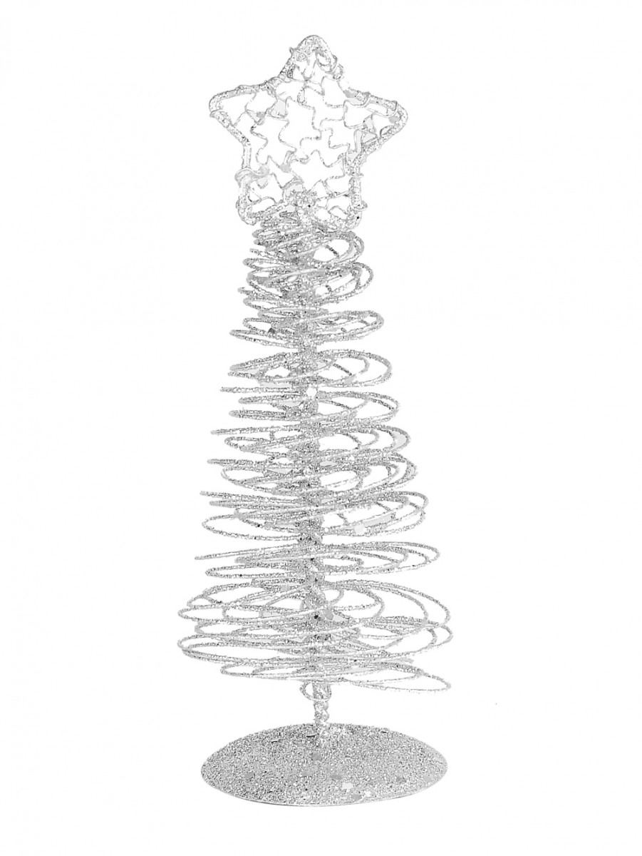 the Silver Spiral Wire Tree Table Top Ornament is beautiful way to achieve a Classic Christmas. Crafted out of the best bright silver wire. This is not your run off the mill, simple table top ornament for Christmas. The tree has an intricate swirling design pattern, culminating in its shape, with the strength to stand on its own weight. Its covered with silver glitter for the added shine, and can work as a decorative piece to add to your Christmas tree. It is elegant in its simplicity. Bring the glitter to your family reunion this year with this table top ornament.