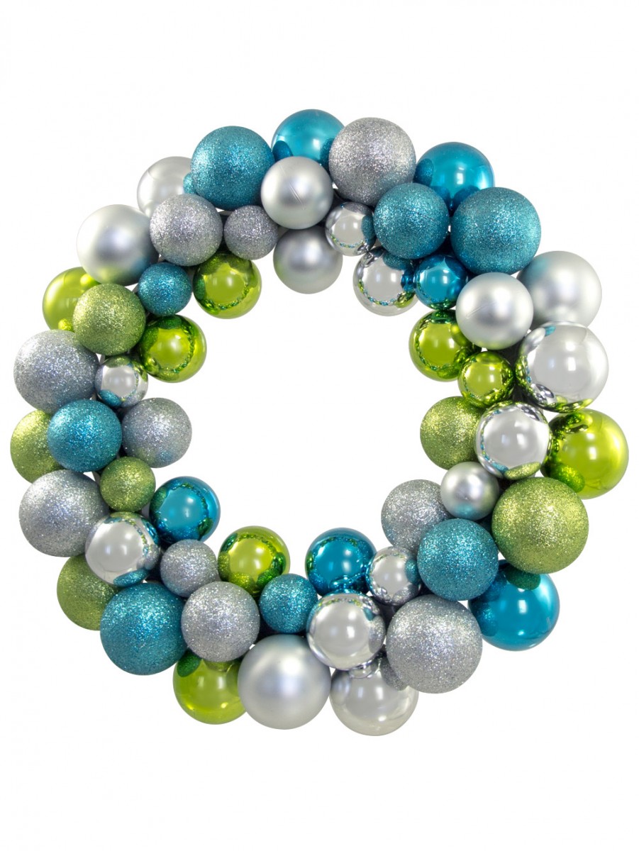 Are you looking to put the same tired decorations away and add some stylish and modern pieces to your holiday decor? Put a fun and contemporary twist on your festive decorating this holiday season with this beautiful and modern wreath. Instead of traditional red and green, a fashionable assortment of variously glittered and matte baubles in the contemporary colour scheme of turquoise, lime green, and silver adorn the basic PVC wreath frame. Decorating is easy with this wreath- simply take it out of the box and hang up. This wreath measures 35 cm x 70 mm x 35 cm.