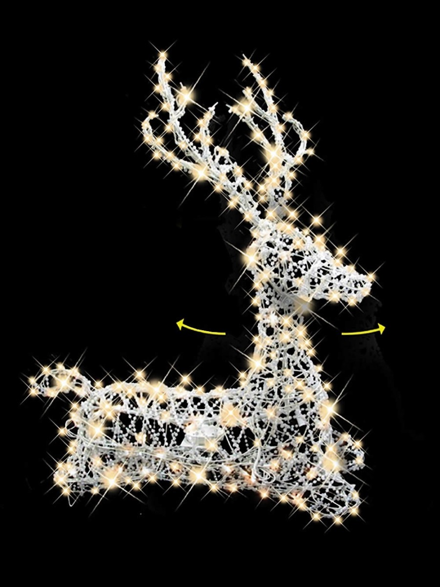 The reindeer can sit elegantly in either your home or out on your lawn. Though sure to shine in the day, the reindeer will truly light up the sky with its super bright lights. Measuring 1m in length, the reindeer is life-sized. Adding to that life-like quality is the animated head. The reindeer's head moves from side to side thanks to animation technology. The deer will amaze your neighbours and passers-by with its brilliant shine and realistic movements. Made of crystals, the reindeer is elegant, sophisticated and sparkling. The statue would be a perfect addition to any decoration scheme. The glistening nature of the reindeer, plus the animated head motions make it seem almost magical. If you are hoping to bring the magic of Christmas to your home, this reindeer will certainly create the look you desire. The Christmas Warehouse has many offerings for decorations to light up the night sky. Consider displaying this deer in your lawn with other majestically lit creatures and accents, or let it stand alone in crystal splendour. Visit the rest of the offerings at the Christmas Warehouse to create a breath-taking display both indoors and out.
