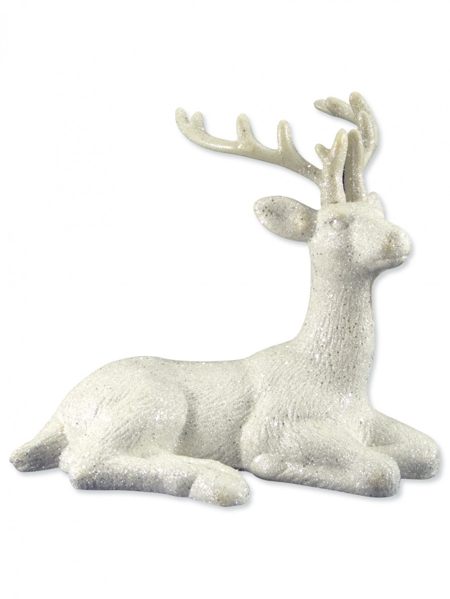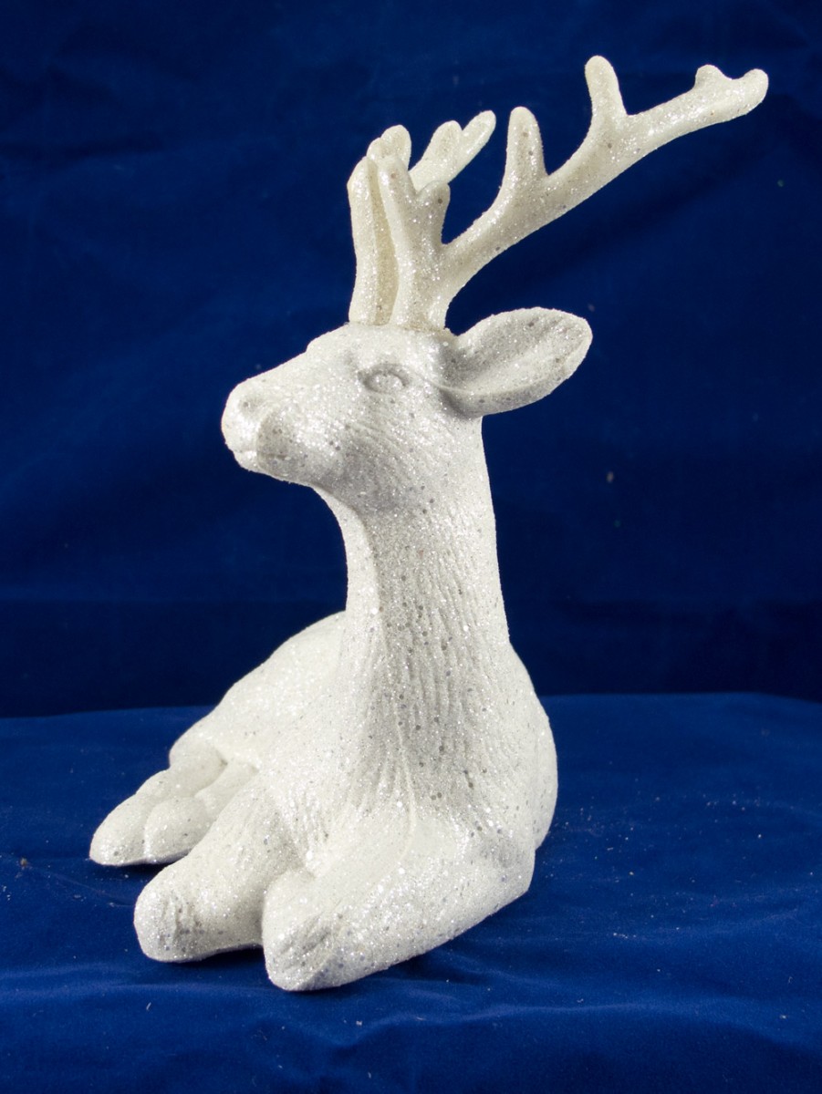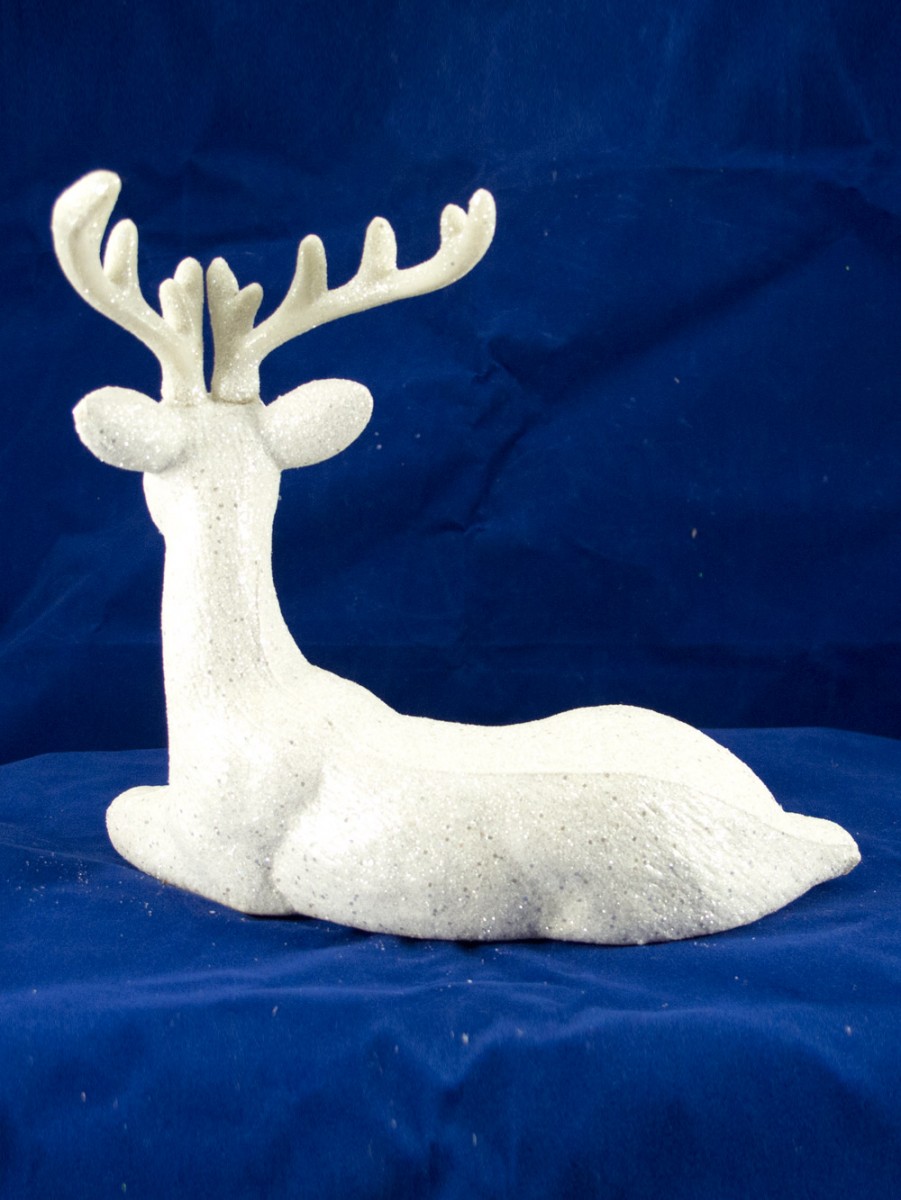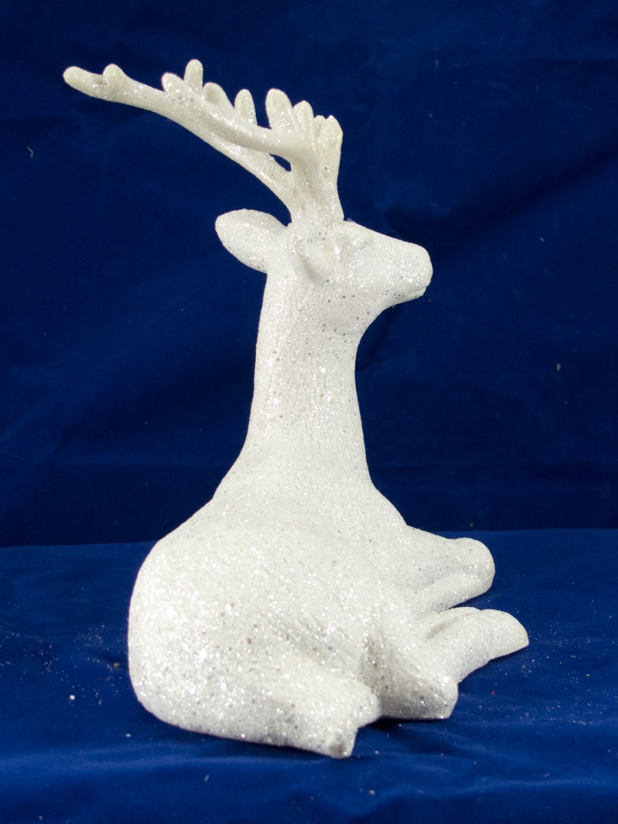 Reindeer have featured prominently as Christmas decorations for more than 100 years. Paper-mache reindeer, which are still popular today, are believed to have first been made in the early 1900s, and since then, ornamental reindeer have been made with ceramic, metal and plastic, among other materials. Reindeer became part of Christmas folklore when Clement Clark Moore published the poem. A Visit from St Nicholas ('Twas the Night Before Christmas) in 1823, which introduced the world to Santa's eight reindeer Dasher, Dancer, Prancer, Vixen, Comet, Cupid, Donner and Blitzen. It's quite incredible that the most well known of reindeer, Rudolph, also started as a character in a poem. Rudolph was created by department store employee Robert L. May, who penned "Rudolph the Red-Nosed Reindeer" to give to children at the store. Little was he to know that this social outcast who would come to guide Santa's sleigh would capture the imagination of millions around the world. Rudolph boosted the popularity of reindeer, and there's barely a Christmas tree that doesn't have reindeer-themed Christmas decorations hanging from it. This ornamental reindeer from Christmas Warehouse will no doubt add some shimmer and sparkle to your home and Christmas display. The white and silver glittered reindeer sits proudly (probably resting before a big night of flying), and is iridescent, so it can give the impression of changing colours when you look at it from different angles. Measuring 20cm long, 12cm wide and 17cm high, get one or get several, depending on what sort of display you're after.