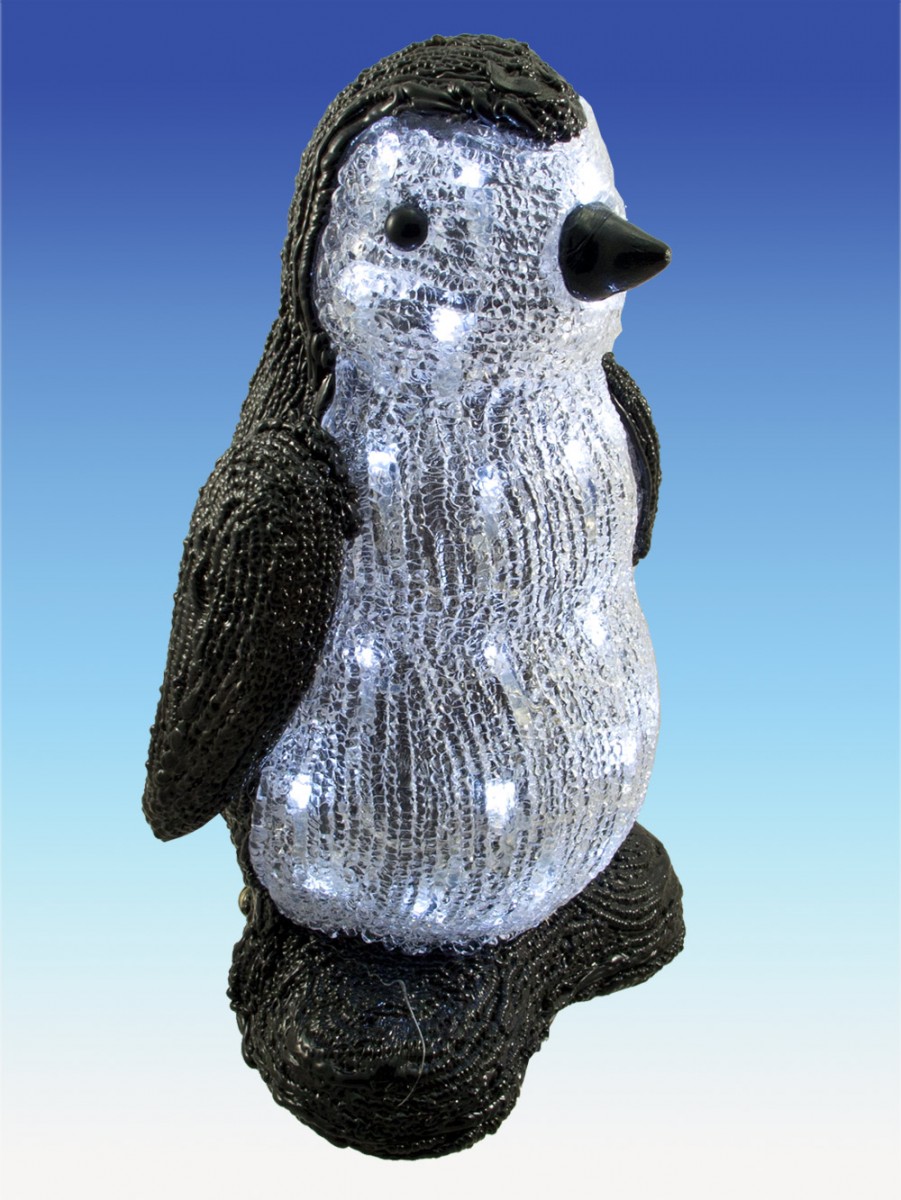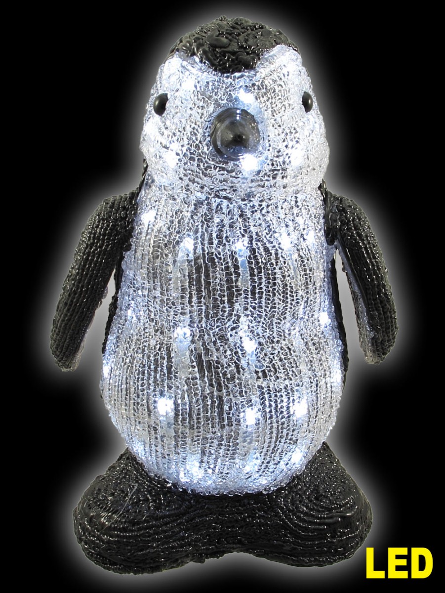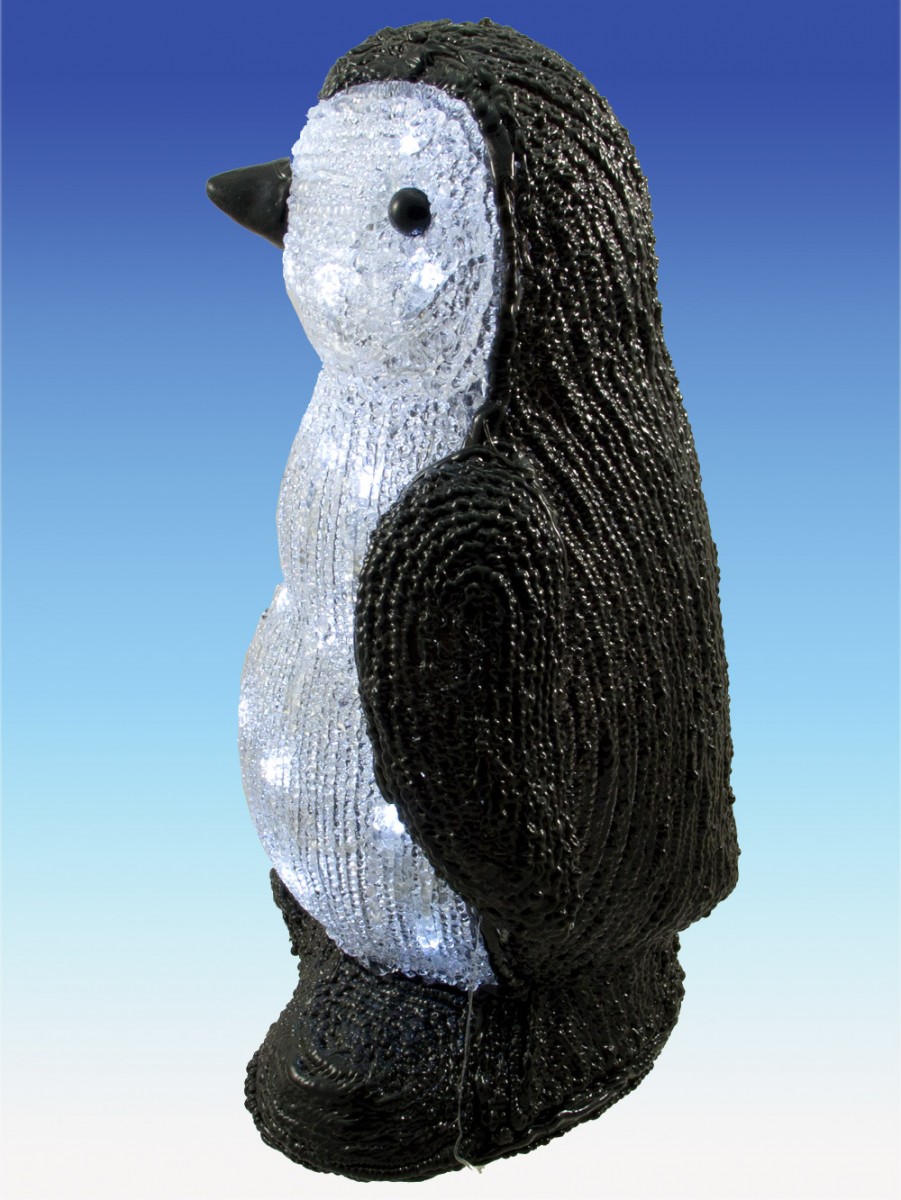 Apart from St. Nick and his reindeers as well as polar bears, penguins are one of the traditional symbols that allow for the Yuletide season's snowy and jovial atmosphere. That's why this Small Acrylic LED Penguin would definitely complete your home or office Christmas ornamentation. Even though it only spans a 320mm height X 210mm dimension, the 32 white LED bulbs inside the ornament make it possible to constantly shine especially at night. This item also comes with a free transformer to ensure that changes in your electric current will not affect the LED bulbs. It is made from black and clear textured acrylic to perfectly craft a life-like white penguin. And because of its size, you can easily place or fit this ornament whether indoors or outdoors. The synthetic fibre of the material assures you that it can stand the cold temperature of the season. This item is sold individually and if you want to pair it with other attention-grabber light displays, you shouldn't miss browsing our other selections.
