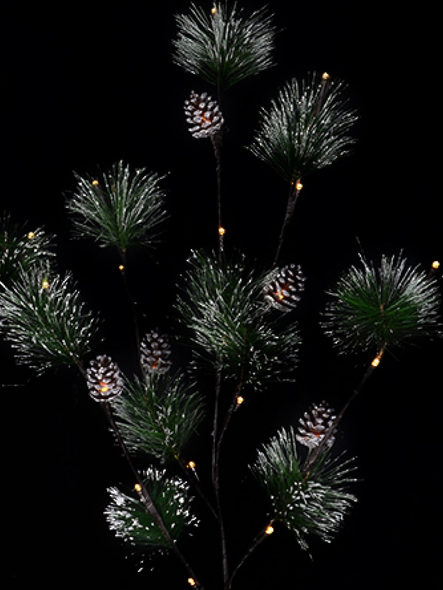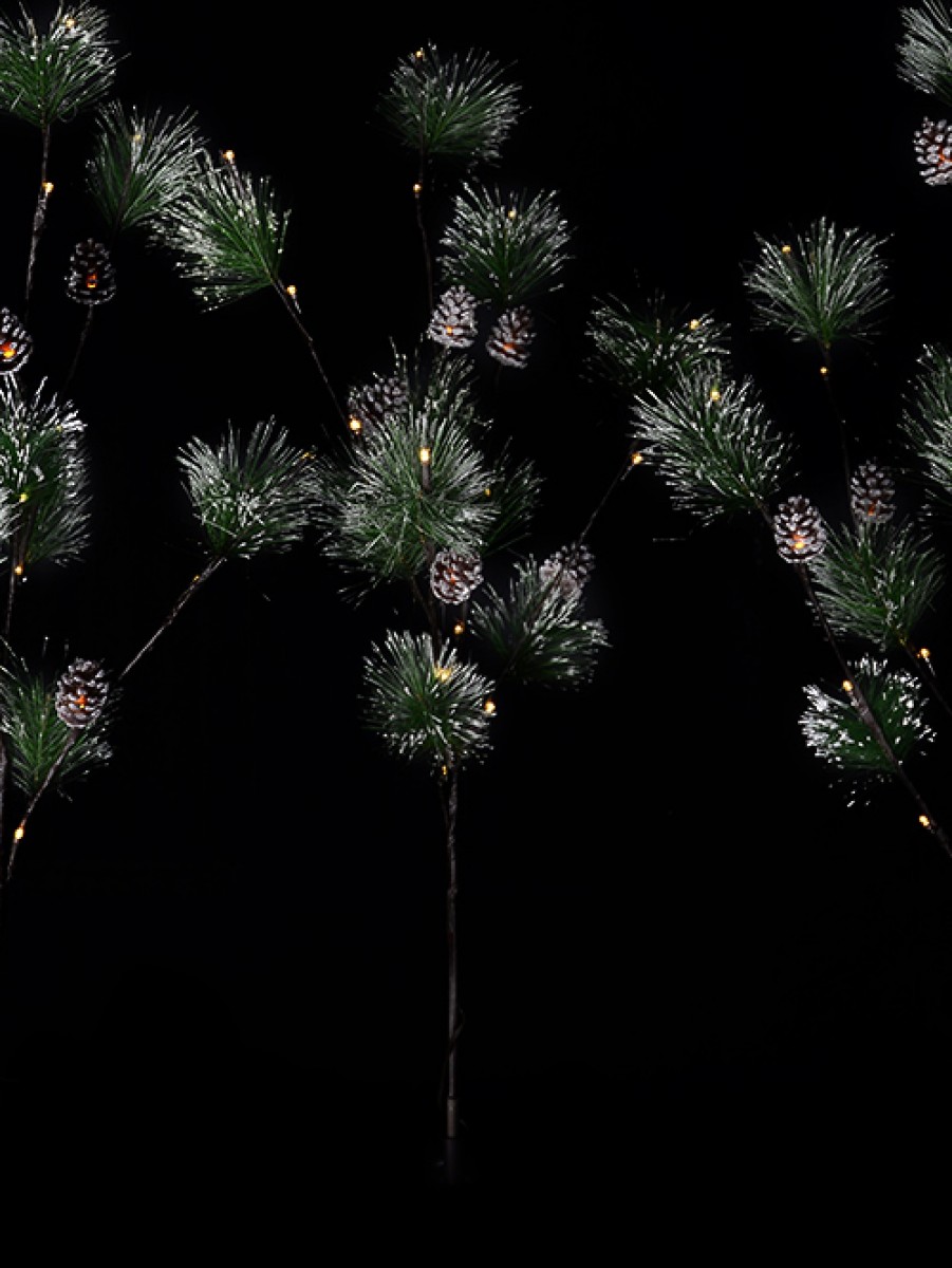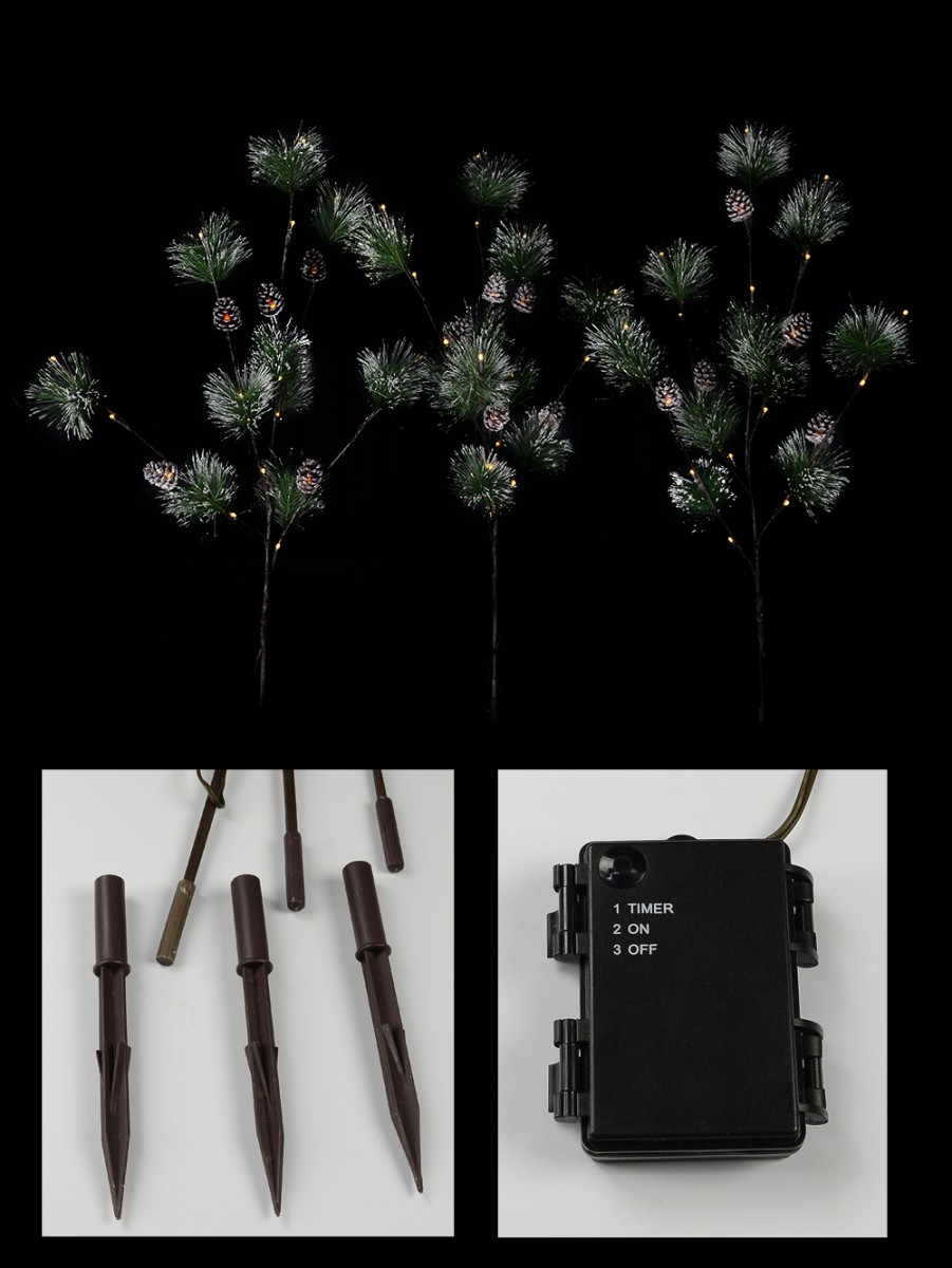 This Christmas light display comes in the set of 3 branch stakes that can either be inserted into the ground or used to decorate a vase. They come in the form of LED pine branches and stakes, featuring pine needle foliage and snow accents. They can be used indoors or outdoors if well-protected.