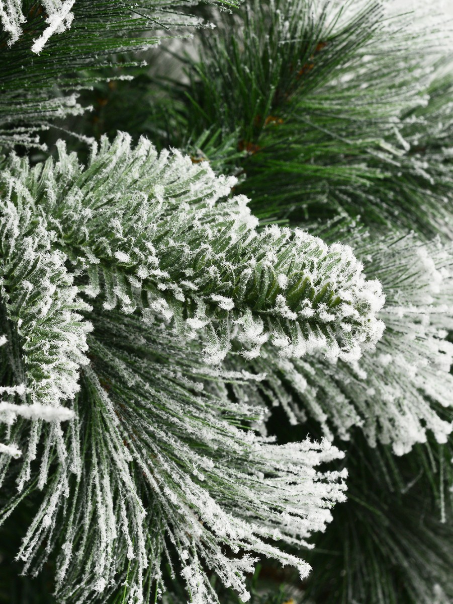 The Snow Dusted Hinged Pine Christmas Tree is sure to fill your home with merry and bright feelings this Christmas. This artificial tree is made to possess a solid trunk, supported by its sturdy metal base. They together carry the dense pine needles that give it the outer look many have come to admire. Throw a 'Winter is Coming' themed holiday party around it and with the right amount of concealment for its base, your guests will hardly know its not the real thing. You also don't have to worry about sweeping away pine needles or them making a mess of your carpet with this high quality artificial tree