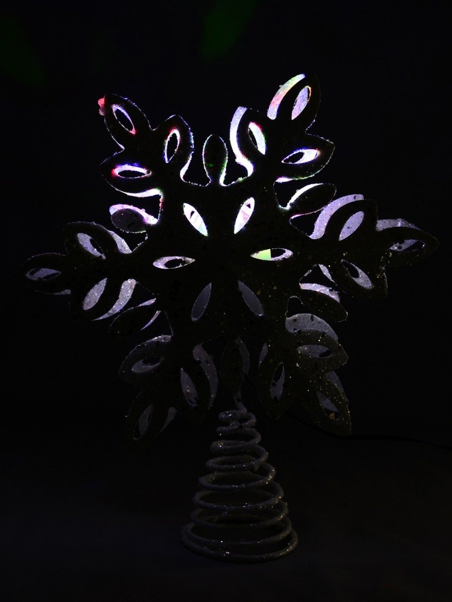 Radiant and beautiful, this unique Snowflake Laser Light makes a fantastic Christmas tree topper that dazzles on the tree as a captivating focal point, creates an enchanting and mesmerising laser lighting experience that radiates warmth across any cosy space and looks especially romantic in dim lighting.