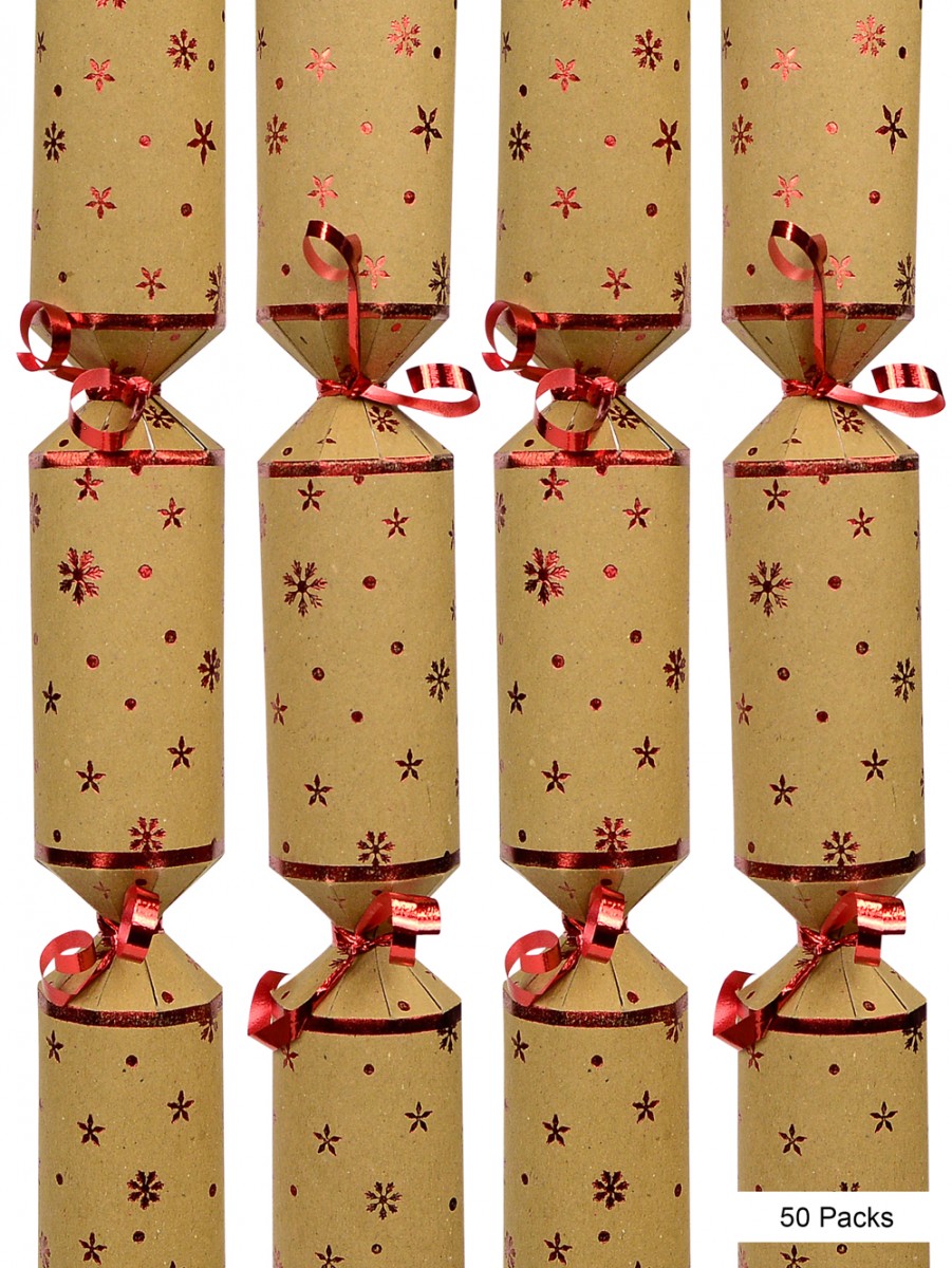 The Red Snowflake & Star Design Bon-Bons is an enticing piece as it is crafted in the traditional Christmas colour of red which stands out conspicuously against a brown background. Plus, it is covered in a symbolic motif as stars play a crucial role in Christmas celebrations. It isn't just the design that attracts our savvy customers to this bob-bons, it is also the fact that it comes with the traditional snap and contains a hat, joke and gift all for such a fair amount! Sold as a pack of 50, it is therefore advisable that you order as many packs as will be enough to share with family, friends and loved ones. Place your order now while it is still in stock and we can have it delivered to your doorstep in just a few days.