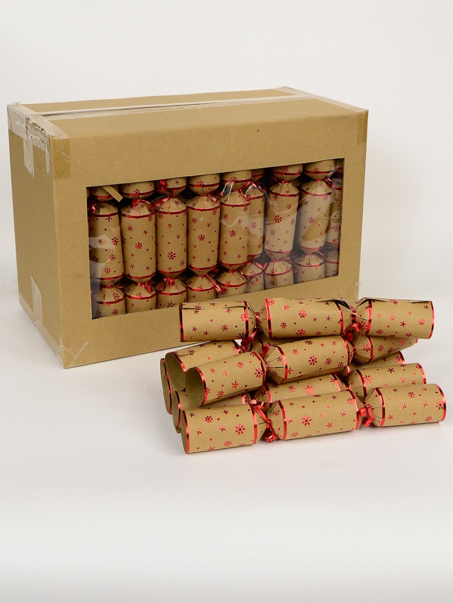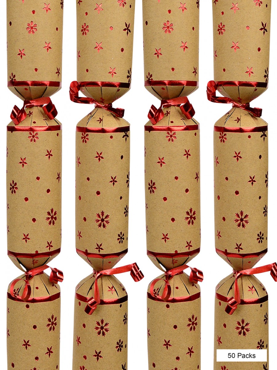 The Red Snowflake & Star Design On Craft Paper Bon Bons is here to add a touch of funfair and family sport to your Christmas celebration this year. Crafted with the traditional coloured paper and containing the traditional items of a gift, a paper party hat, a joke and a snap, this beautiful bon bons adds a touch of red stars to fire up every Christmas celebration. It comes in a pack of 50.
