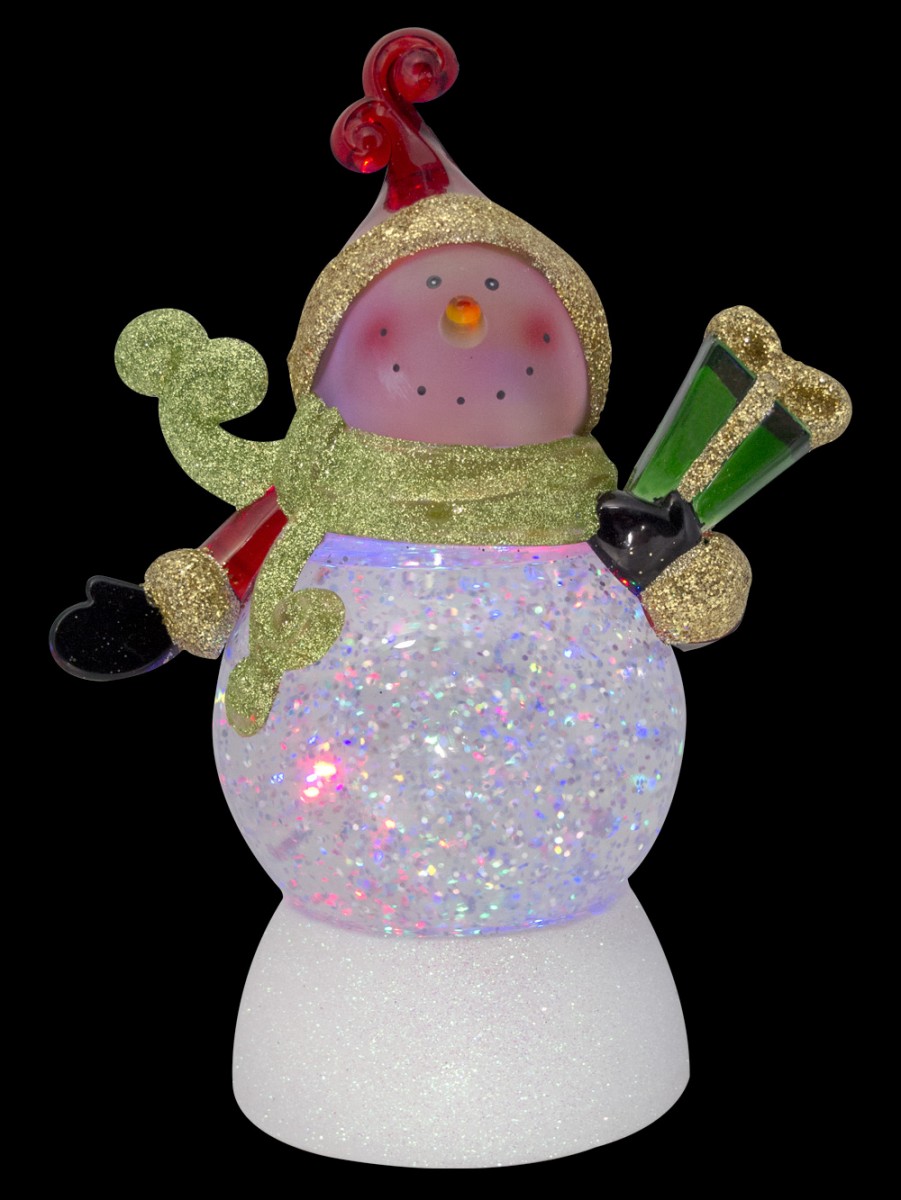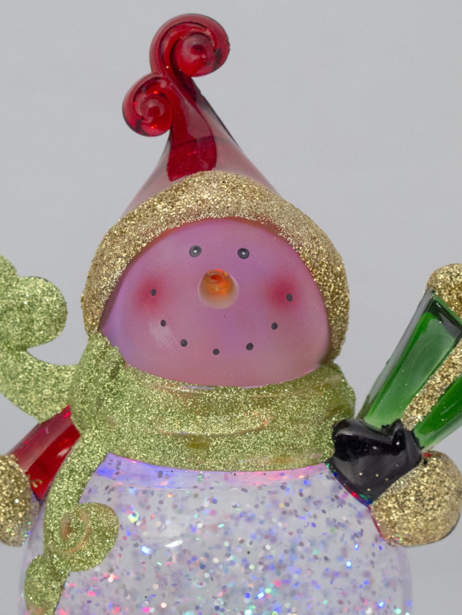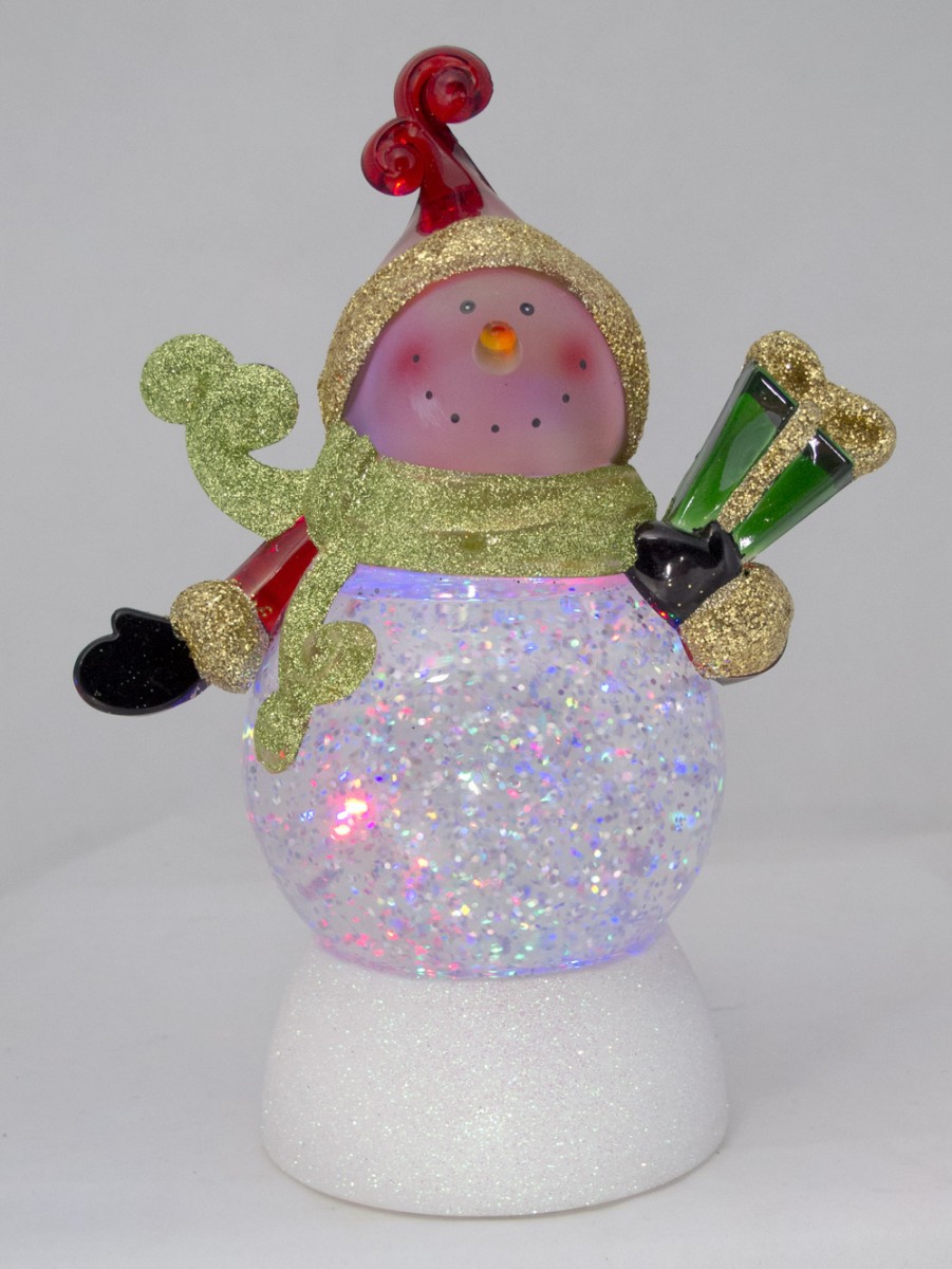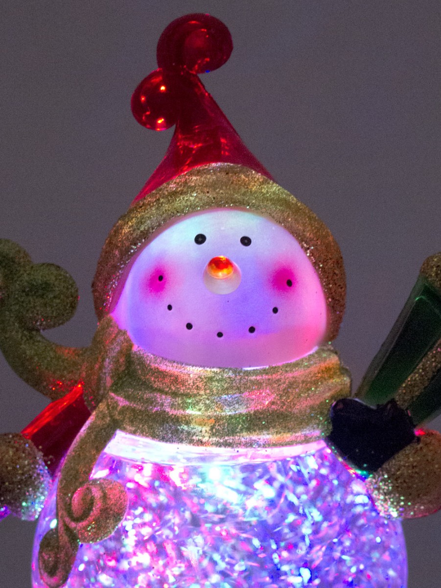 What makes you remember and cherish Christmas the most? Holiday symbols such as Santa Claus, Christmas trees and snowman are just few of the popular choices. Hence, when looking for the best yuletide accessories, snowman decorations are always on top of the list. This jolly and merry symbol of the holiday season is perfectly captured in our Snowman Illuminated Snowing Snow Globe Ornament. Nothing boosts the aesthetics of every home, offices and any other venues with a smiling snowman with multi colour LED. The resin and snow globe snowman is crafted from fine quality materials. It is molded with a smiley design complete with the green glittered scarf, frosted facial features and white iridescent base. The continual swirling silver in the snow globe embellished with Led lights complete the eye-catching treat. The LED lights are controlled by an on / off switch on the base. It required 3 x AAA batteries that are not included.