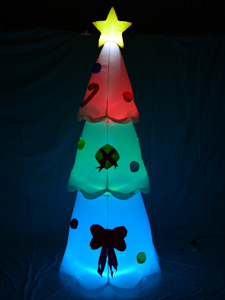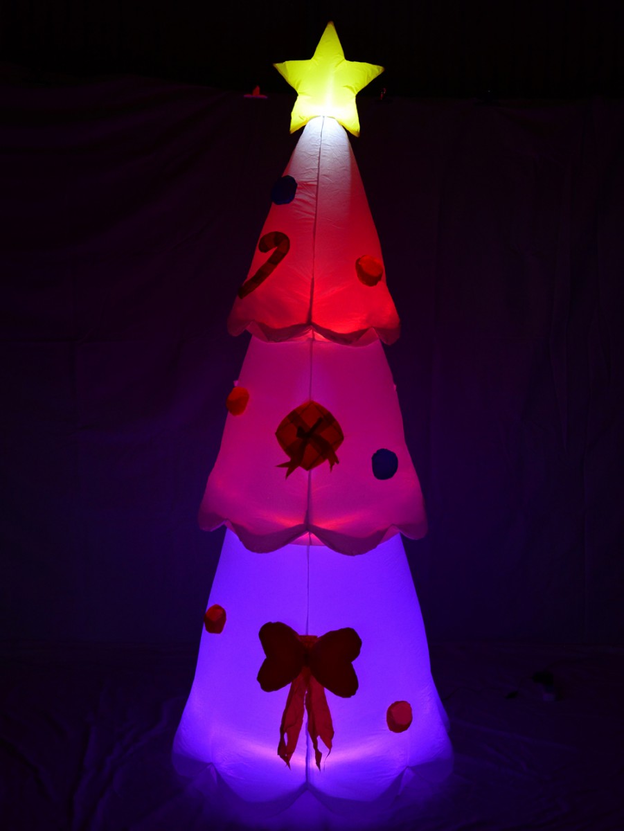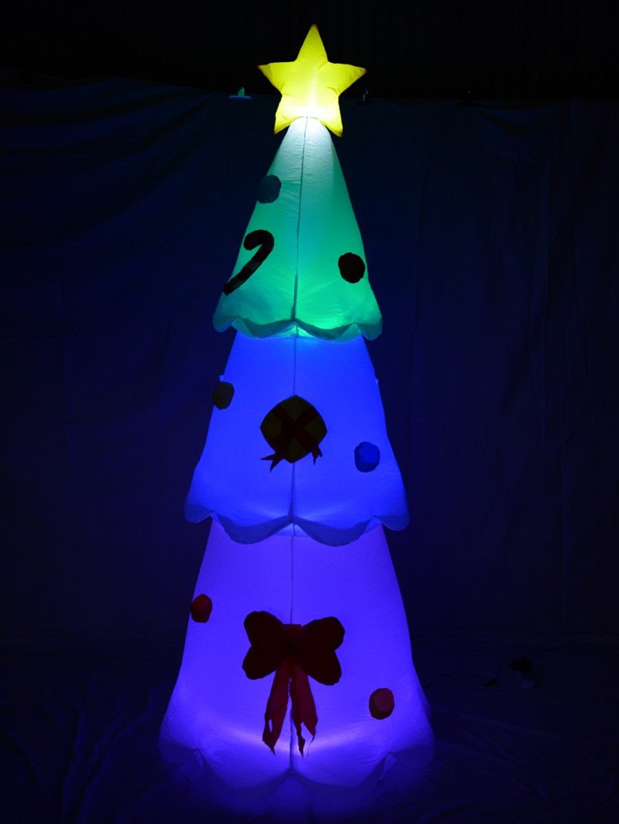 Standing at 2.4m tall, this large standing Inflatable Christmas tree is sure to bring cheerful Christmas spirit to any living space and will give a warm welcoming decoration to greet your guests or neighbours. It is great for decor in and out of the home (except during the rains) and the multi-coloured illuminated design makes it splendid for night-time display.