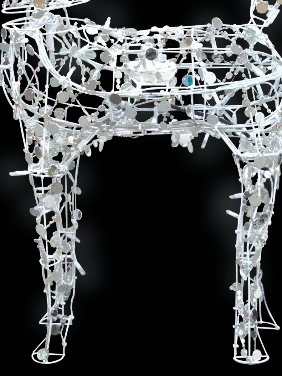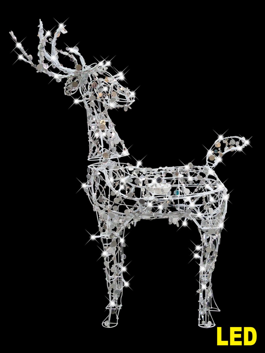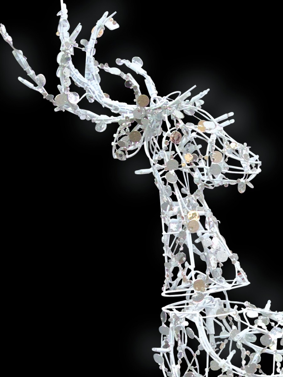 This 3D animated reindeer in particular stands out among the rest in brightness and elegance. A combination of twinkling LED lights and silver reflective disks give this reindeer an almost ethereal quality. Shining against the night sky, the reindeer appears as though it could be made of stars. This bold reindeer display measures, in mm, 620L x 1219H x 200W. It can be placed either indoors or out. Wherever you decide to put it, it is sure to shine brilliantly and impress your guests. The cool white LED lights shine brighter than standard bulbs. Additionally, they last longer and are more energy efficient. By combining these ultra-bright lights with tiny reflective disks, this reindeer becomes a spectacle of lights. The lights play off of the disks as the animation allows the reindeer's head moves from side to side. For a holiday display that is brilliant and bright, be sure to pick up this animated reindeer. The LED bulbs will light up the night, and the faces of all who stand mesmerized by the life-like and magical reindeer. The Christmas Warehouse is stocked with many beautiful Christmas decorations for indoors or out. Peruse through the many offerings today to create a holiday display sure to please all of your guests.