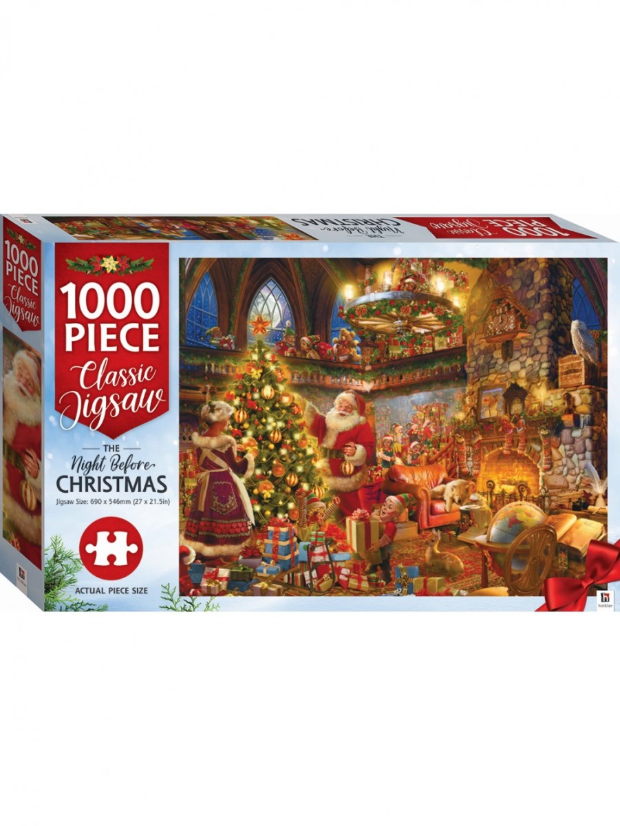 T'was the night before Christmas... and Santa was busy doing last-minute checks of his list and adjusting the decorations on the Christmas tree, while the elves were busy finishing the last of the toys! This stunning, detailed puzzle will make everyone wish for Christmas all year round. Perfect for anyone who wants to test their jigsaw skills, is looking for a calm and meditative activity, or just loves the most wonderful time of the year, this beautiful Christmas puzzle will delight both young and old.