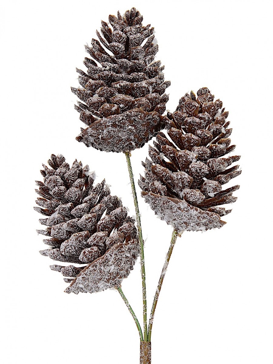 Our three snow-covered pine cones pick is the perfect Christmas ornament to give that festive, traditional touch to your DIY holiday arrangements and winter wedding bouquets. The three faux pine cones come on a single stem for easy use and have a lovely frosted look as if they have been picked straight from the winter forest!
