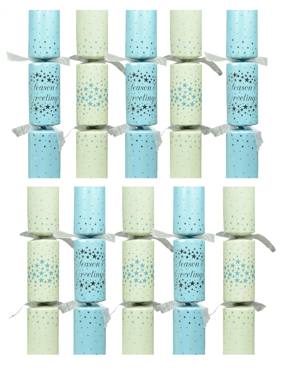 Add a festive cheerfulness to your Christmas celebration this Xmas 2020 by buying this Tiffany & White Season Greetings Bon Bons. Decorating the body of these white and teal coloured bon bons are Christmas star prints which add a bit of sparkle to your family's festivity. It is then held in place by classic white ribbons which add to the alluring look.