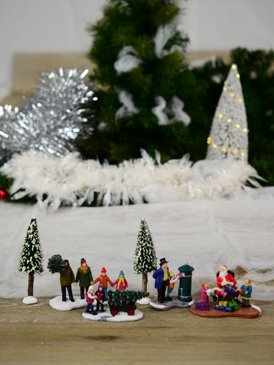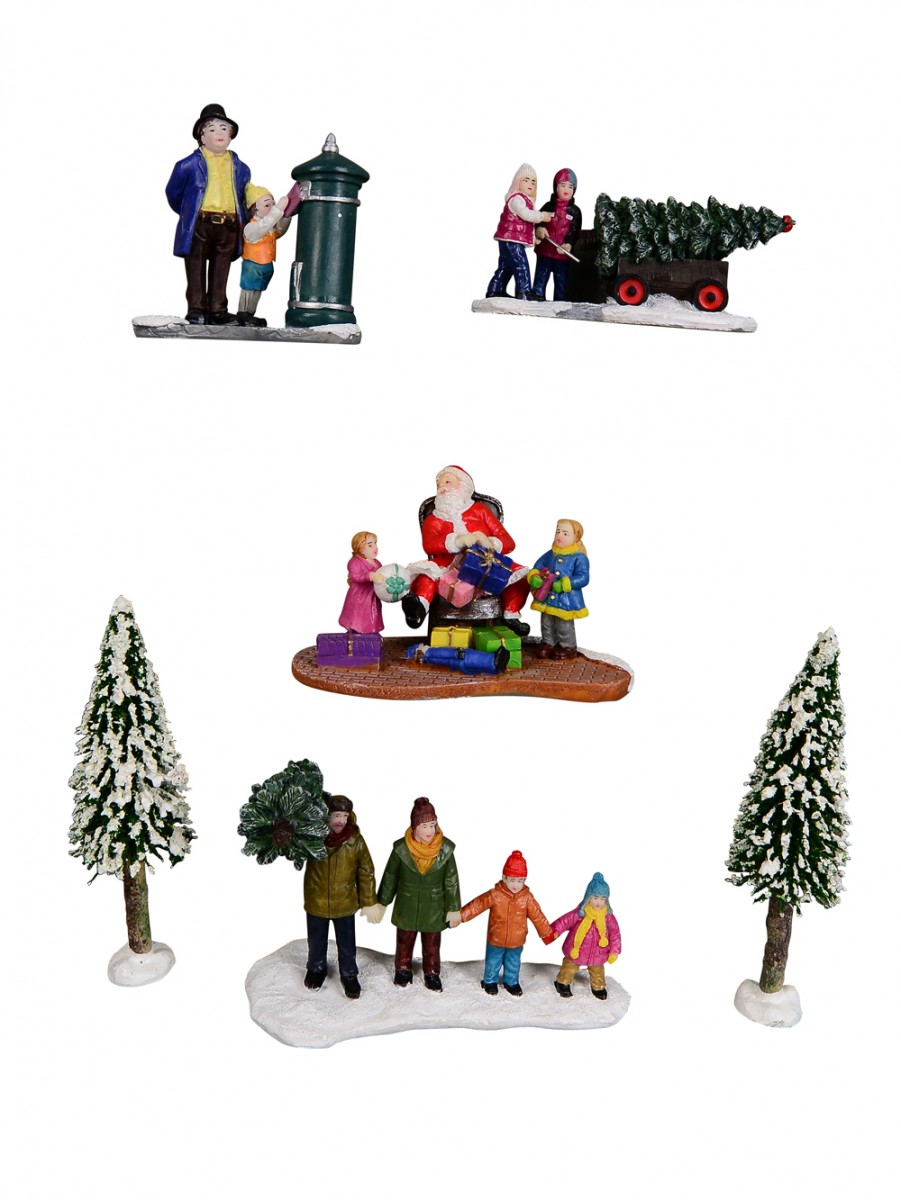There are adorable Christmas ornaments that doesn't consume much display space or attract expensive price tags, yet, they are capable of giving your home and office such appealing Christmas festive ambiance. This Traditional Getting Ready For A Winter Christmas Figurine Set is a perfect example of such. The first piece in this set features a father supervising his son while cleaning in preparation for Christmas. The second figurine features a boy and girl pushing a cart containing a cut Christmas tree. The third is a figurine of Santa giving gifts to kids. While the fourth is a family of four walking home while the father carries a Christmas tree on his right shoulder. The fifth and sixth piece is a figurine of individual Christmas trees with a frosted look.