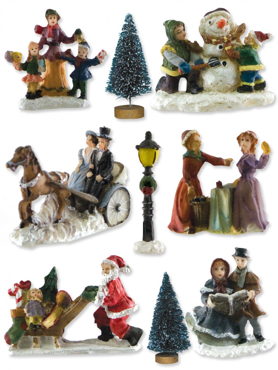 If you are looking for a more elegant way of decorating your home for Christmas, then let the Figurines - Traditional Polyresin Town Scene - 9 Pieces - Style 3 help you! The set comes with 9 different figures that depict the different winter activities during the Holiday season. If you want variety, this set totally has it! The figures include a woman pushing a cart filled with wonderful flowers, a lamppost, a sleigh with a Swan design, and of course Santa Clause. Recreate a traditional Christmas village scenario by placing each figure properly on your living room table. You can even choose a specific table for your miniature town! And since the figures are just the right size, you can be sure that they will not take up too much space. Awaken your children's imagination by letting them design the town with you. Using the Figurines - Traditional Polyresin Town Scene - 9 Pieces - Style 3, you can make sure that you and your kids will completely enjoy preparing your home for the Yuletide festivities.