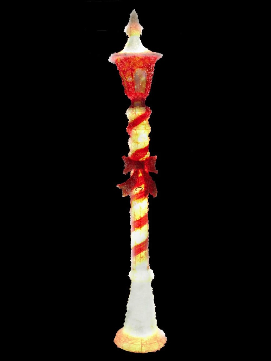 The perfect accent piece to your entryway, illuminating a hallway or standing brilliantly in a lonely corner is this illuminated lamp post. Standing a towering 1.9m, it is sure to wow your friends and family, as well as light up the entire room with its brightness and charm. With traditional red and white stripes and a decorative red bow, this light-up lamp post is reminiscent of a delicious candy cane. The bright fire shines within when plugged in, and the base and pole are illuminated as well. The light is a static burn light display and features a 1.6m cord for easy access to a wall plug-in. Made up of nylon flocked crystal sprinkles, this illuminated lamp post is for indoor use only. The crystal sprinkles cause this light to reflect beautifully on the surfaces around your room as it shines brightly from within. It is a breath-taking and attention-grabbing centrepiece for your home. The perfect accent for creating a winter-wonderland indoors, pick up this gorgeous illuminated lamp post today. Each detail, from the orangey glow of the fire in the top, to the decorative red bow to the cheerful glow this piece is sure to give your home, make this piece one-of-a-kind. For a large decoration at a low price, this lamppost is perfect for your home.