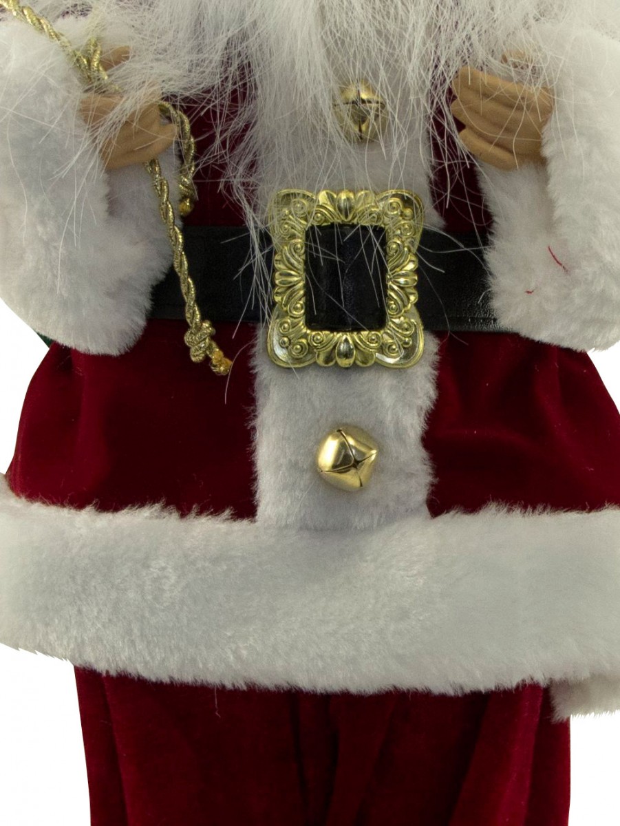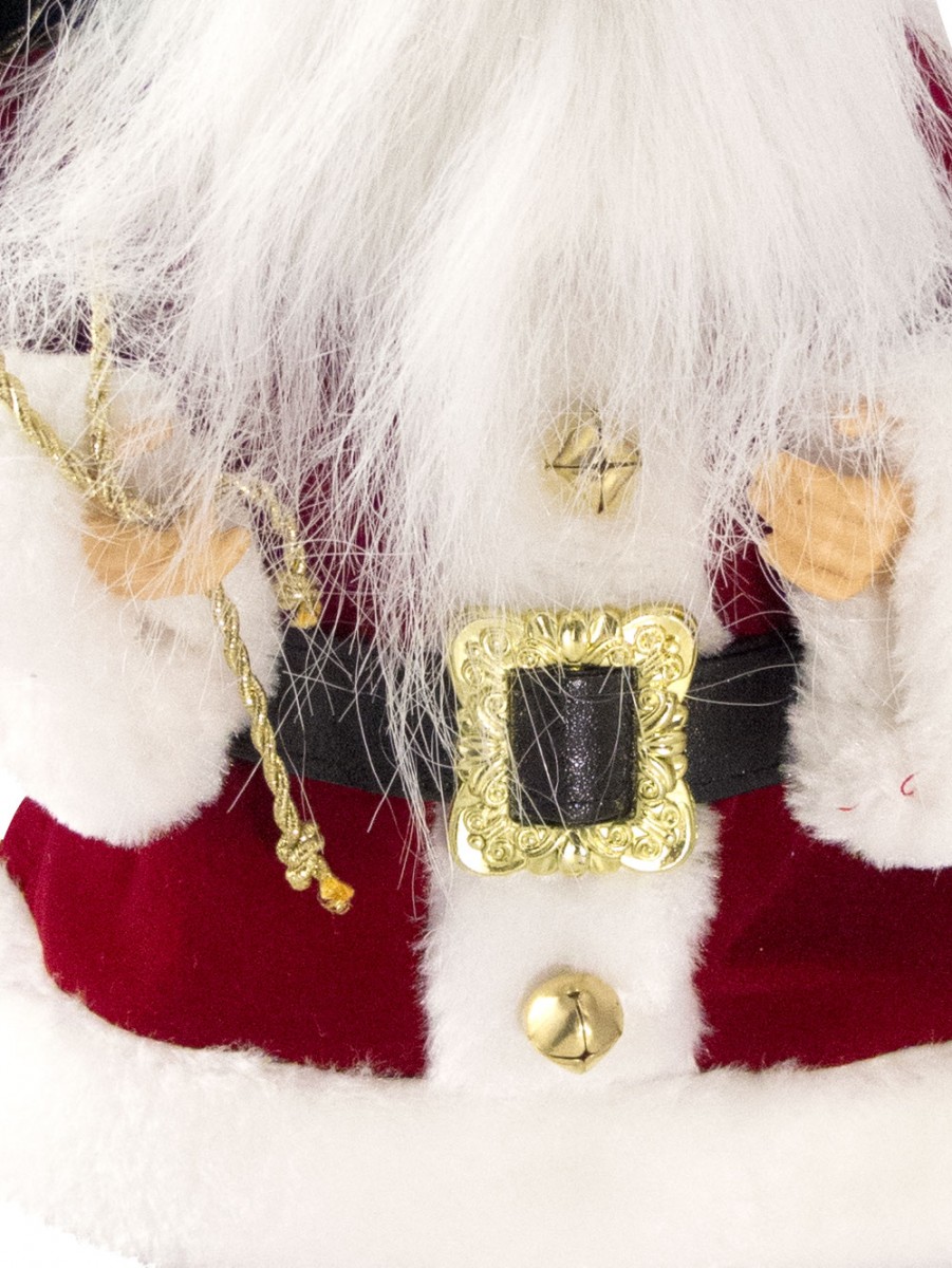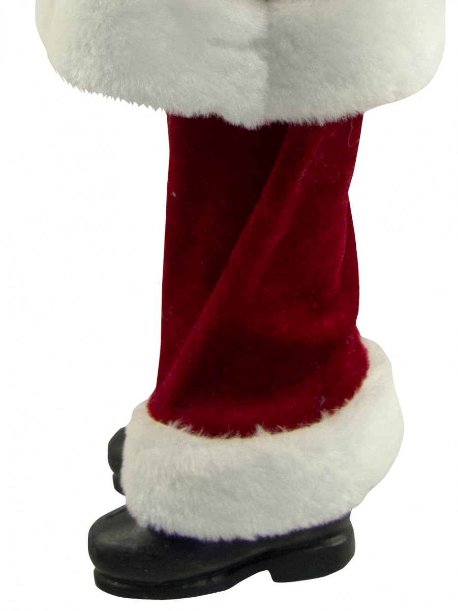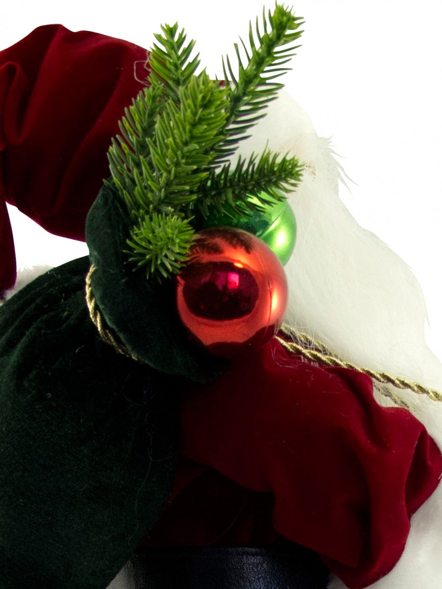 Celebrate the yuletide season with the festive ambiance everywhere! Large decorations such as this Traditional Suit Standing Santa With Sack is the perfect accessory for any jovial season celebration. This ornamental piece is a head turner which could accentuate anywhere anytime. It could be simply placed in homes, offices and any venues for that instant holiday sprucing up. The Traditional Suit Standing Decorative Santa With Sack is measured 46cm and made from the finest quality materials. It is designed with the plump Santa Claus trademark, white white beard and matching red and white hat. The eye catching yuletide accessory is also designed with the deep and regal red suit with white padded edges and classic gold glasses and belt buckle. The Santa pants have the red palette with white padded edging. Santa is also holding a sack with a combination of baubles, pine twigs and wrapped gifts.
