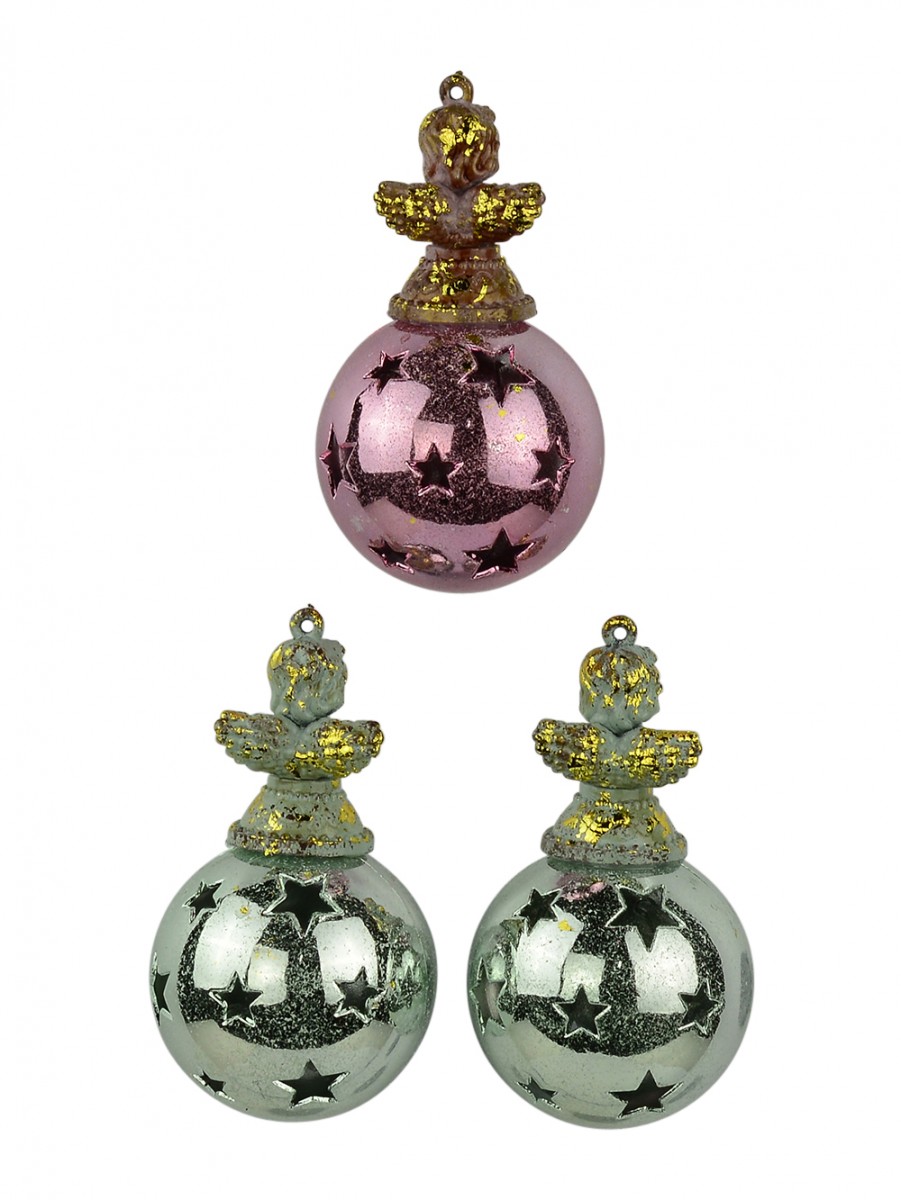 The cupid makes a potent symbol of the love between two people, making this set a romantic Christmas gift to a loved one to be cherished and will fill their heart with warmth and love. With one bauble in gorgeous antique pink colour and the other two in lovely antique turquoise hue, this set features a matching coloured cupid atop each bauble painted in distressed gold for a striking vintage appearance. There are star-shaped holes on the baubles and an eyelet on top of each cupid's head for you to loop in a fancy string or ribbon that you desire.