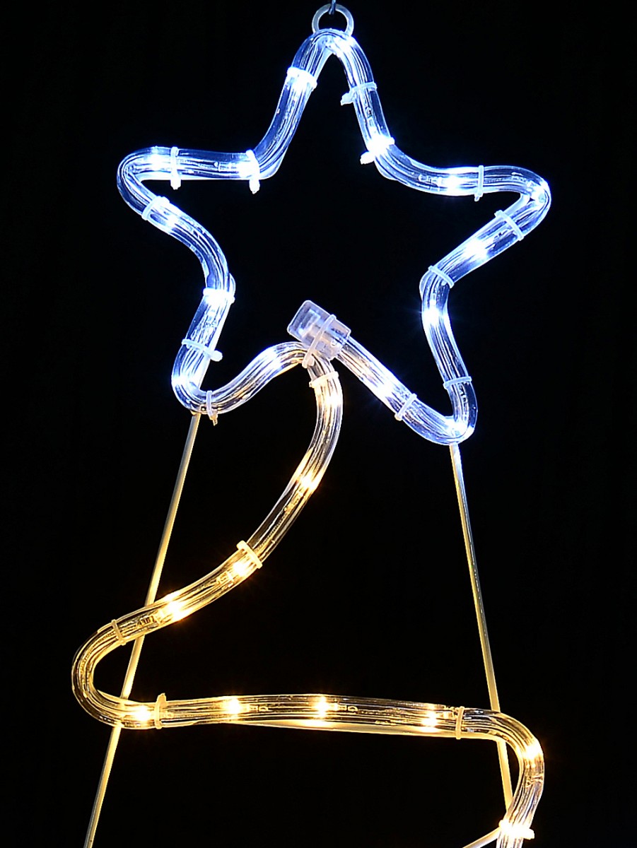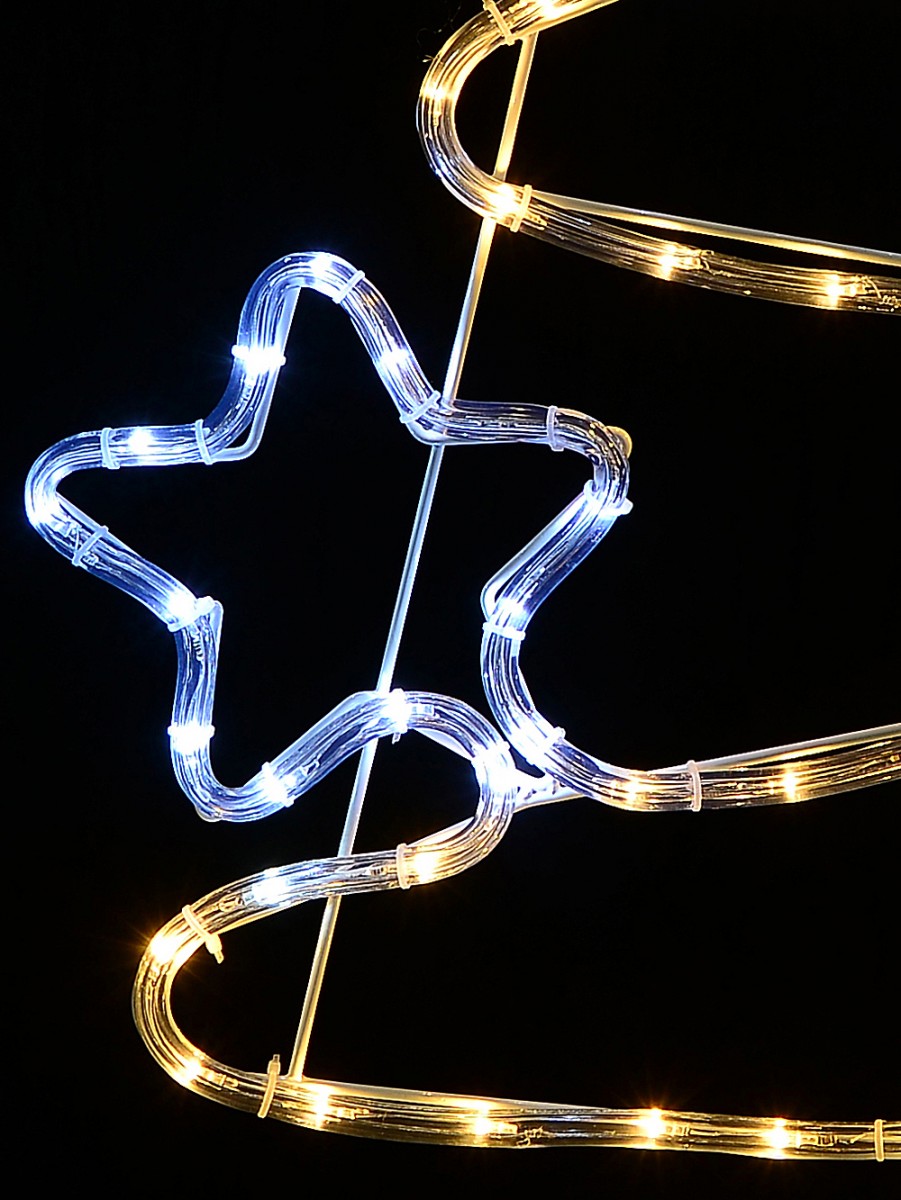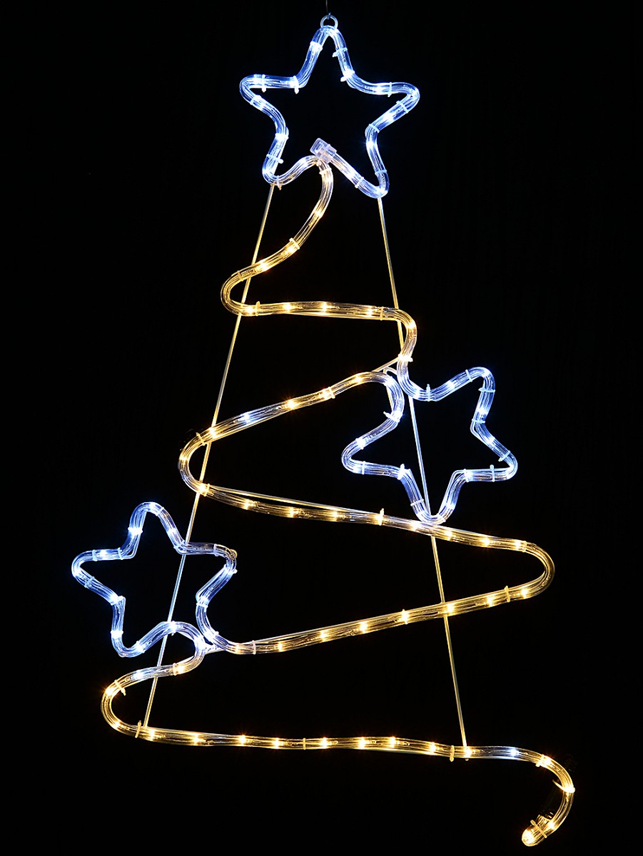 Welcome the sweet allure of festive glee into your space with Warm & Cool White LED Christmas Tree With Stars Rope Light Silhouette. This intriguing collection features a minimalist Christmas tree and vibrant colour popping stars including a star topper. Asides from being an excellent accessory to any home décor, it is also a show-stopper. Effortlessly spruce up a festive atmosphere with Warm & Cool White LED Christmas Tree With Stars Rope Light Silhouette. Did I mention that LED lights are highly energy-efficient?