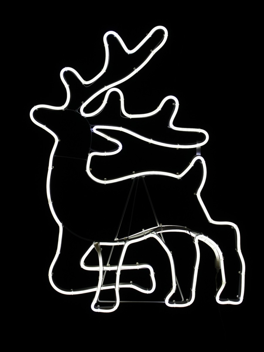 This Christmas help Santa spot your house with our Reindeer Neon Flat Rope Light Silhouette. The 67cm x 48cm x 78cm standing reindeer is constructed of warm white neon flat rope attached to a metal frame and is built to shine through many wonderful holiday seasons.
