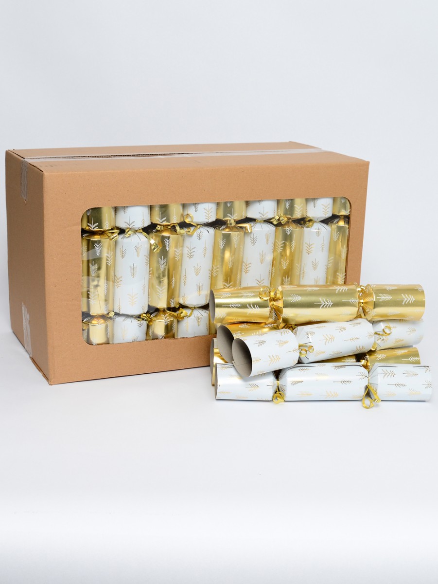 The White & Gold With Pine Christmas Tree Branches Print Bon Bons is a versatile and visually appealing addition to your holiday decor. Not only do they capture the spirit of Christmas with their festive design, but they also entertain the whole family.
