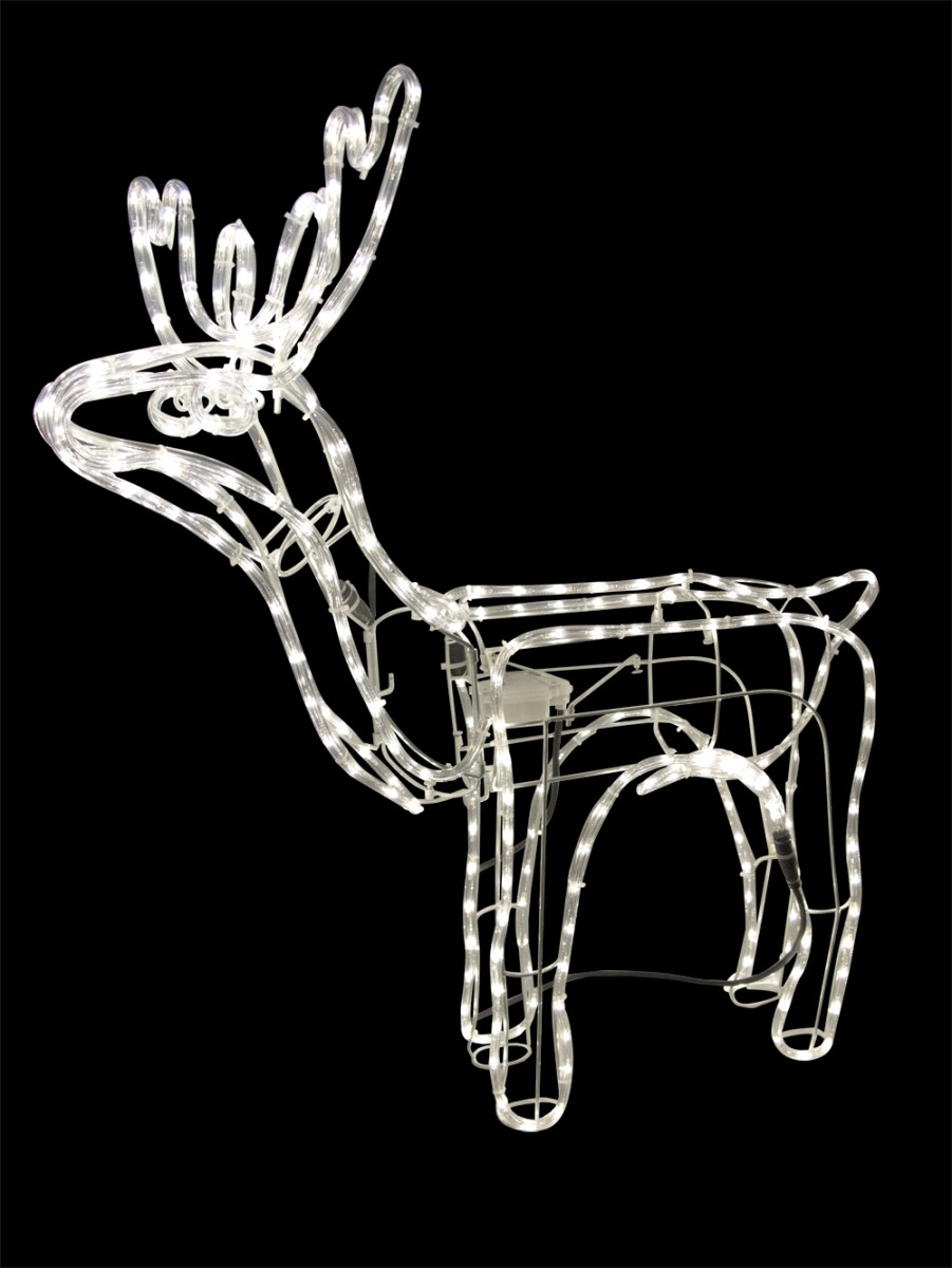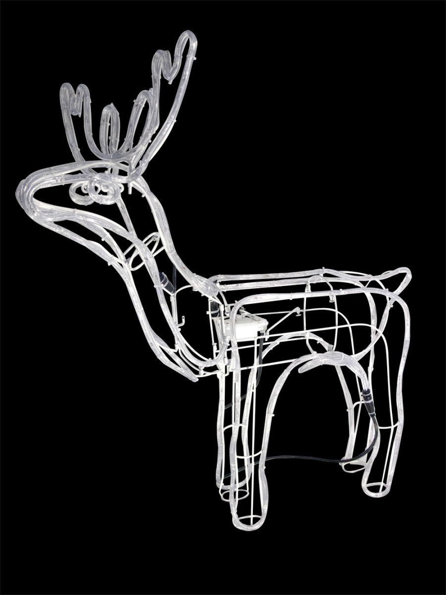 To create a true winter wonderland at your home, retail space or event venue for Christmas, this White LED Large 3D Standing Buck Rope Light Display is an essential addition to complete the scene. Safe and suitable for both indoor and outdoor use, this brightly lit-up reindeer stands on its own at an impressive height of 95cm and makes a particularly wonderful and elegant luminous display for a front lawn, porch, gazebo or any outdoor setting. This radiant reindeer even moves its head from side to side for a graceful and magical effect.