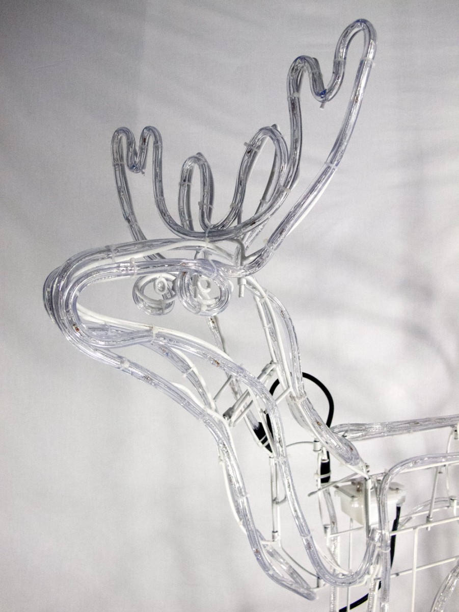 For an even more spectacular setup that's reminiscent of a snowy and sparkling white Christmas, complement this incredible White LED Large 3D Standing Buck Rope Light Display with matching cool white fairy lights strung across your holiday space, or pair it with other white LED 3D reindeer (buck or doe) rope light displays in similar styles but different sizes.