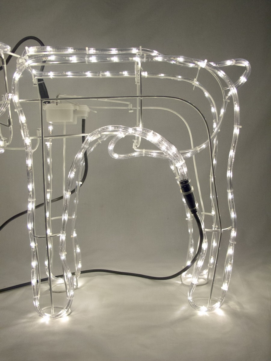 If we had to pick one animal that represents Christmas, of course it would be the reindeer. They're the ones who get Santa off the ground on Christmas Eve as he sets off to deliver his toys and goodies to children of all ages around the world. So what better way is there to fill in your holiday display than with our Warm White LED Large Standing Buck? This buck stands more than 3 feet in height so he makes an impressive appearance. The warm white LED lights are safely housed in protective vinyl tubing to keep them safe from wind and weather.