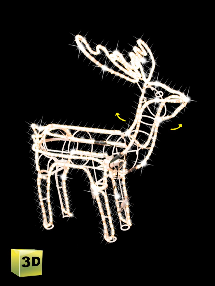 To create a brilliant display and a magical wonderland in your own yard, all you need is this breath-taking rope light reindeer display. Measuring 1.1m x 54cm x 1.1m , this reindeer is both life-sized and 3D, giving it an incredibly realistic appearance. Your neighbours may think it has magically sprung to life when they see the fantastic animation of the reindeer. The head of the reindeer moves from side to side, as if it is simply checking out its surroundings. This realistic reindeer display is made up of rope lights in a warm, white tone to light up the sky and amaze those who watch it. This statue comes complete with a controller kit to set the reindeer on static burn, quick flash or slow flashing light settings. You can create your own light show with this animated and elegant reindeer. The 3D rope light reindeer is sure to be part of a display that has the ability to restore wonder in us all once more. Creating depictions of magical winter scenes is easy to do with the decorations found at the Christmas Warehouse. Be sure to check out the other offerings that will turn your yard into a brilliant light show.