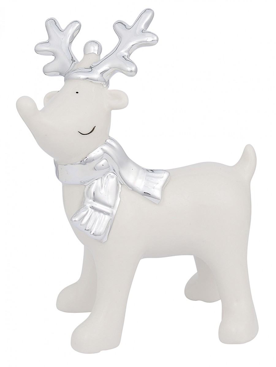 Apart from Christmas trees, Reindeers are very popular decorative Christmas motifs. This is why you would be making the right shopping decision when you choose to buy as many of this reindeer themed ornament as you can while it is still available. This adorably charming White Winter Reindeer With Scarf Ceramic Ornament is moulded through the use of premium quality ceramic material in a design which showcases the reindeer as maintaining a standing posture while a white glossed scarf is draped around its neck. It wears a Santa hat and its antlers are equally glazed in glossy white appeal.