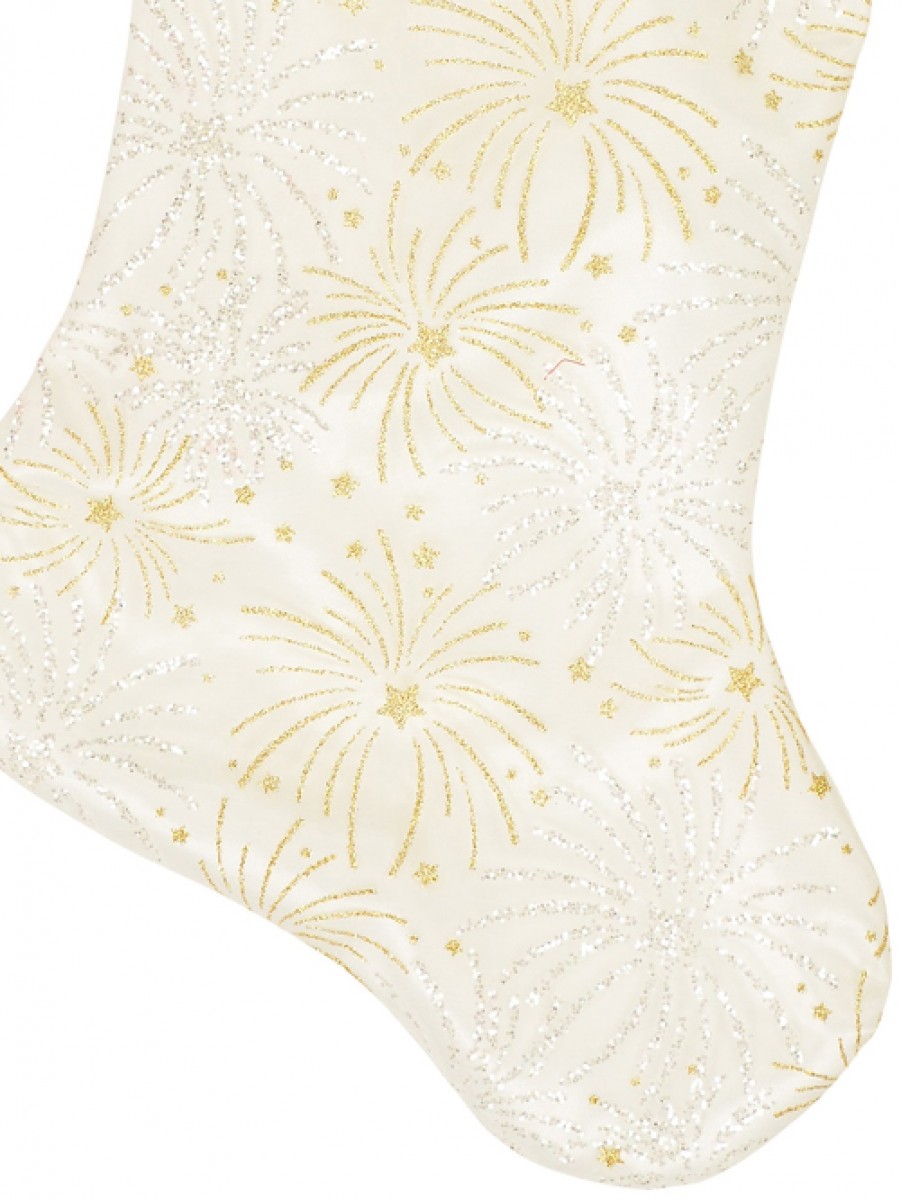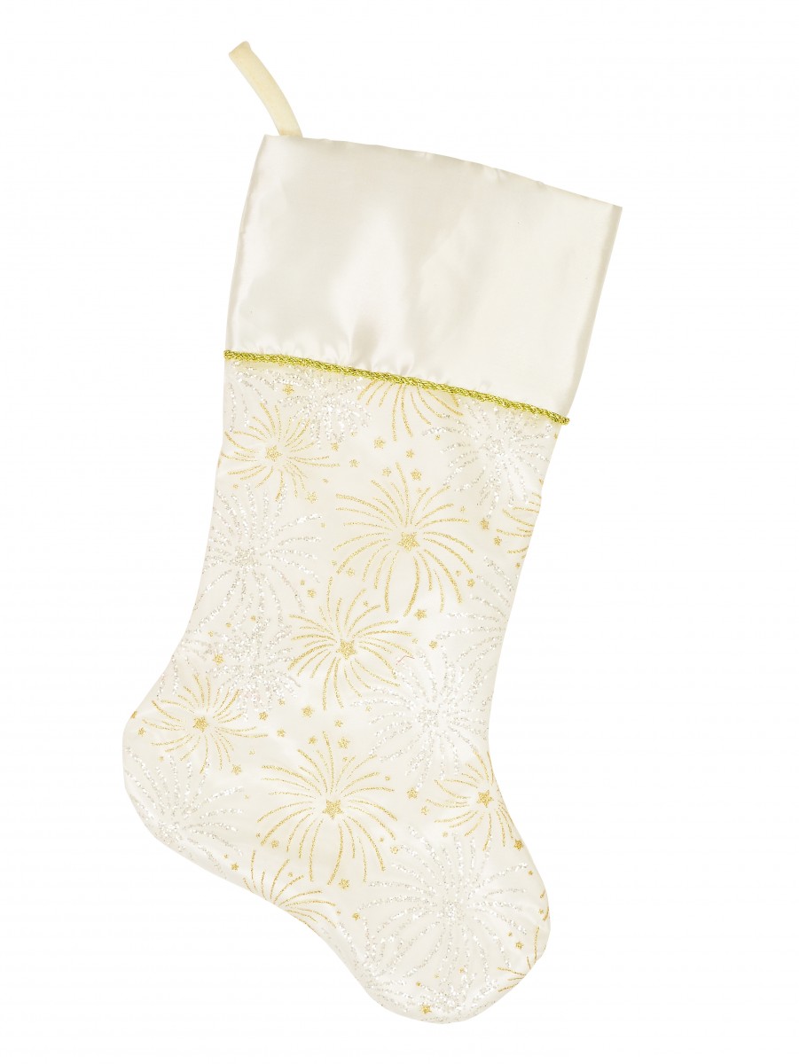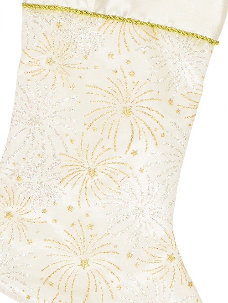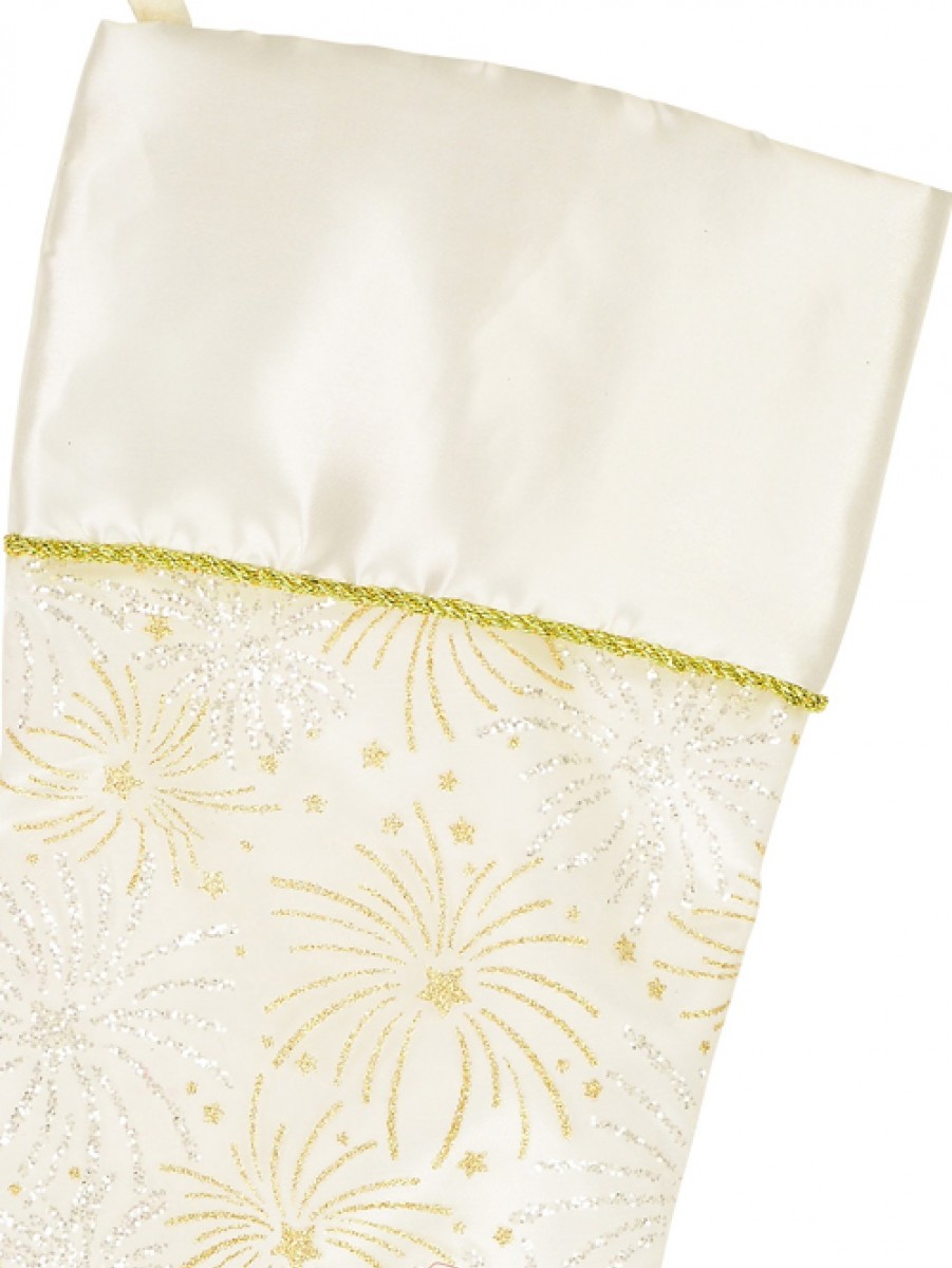 What is Christmas without Christmas stockings? The satisfaction after decorating your entire house in every detail possible is unmatched. Christmas stockings add to the aesthetic of a decorated home. White stockings look very beautiful and dreamy. They can give a feel/sense of winter. The white with green and iridescent glitter sunburst pattern Christmas stocking from our collection is a perfect choice to brighten up your Christmas. It is created using satin with a gold metallic cord edge around the cuff. White is generally associated with peace and purity and is often used in Christmas decor. This fancy Christmas stocking will add a magical touch to your house. An excellent buy for a Christmas to remember! You can hang these on your mantle, Christmas tree or staircase. Our white with green and iridescent glitter sunburst pattern Christmas stocking is high quality, durable and long-lasting.