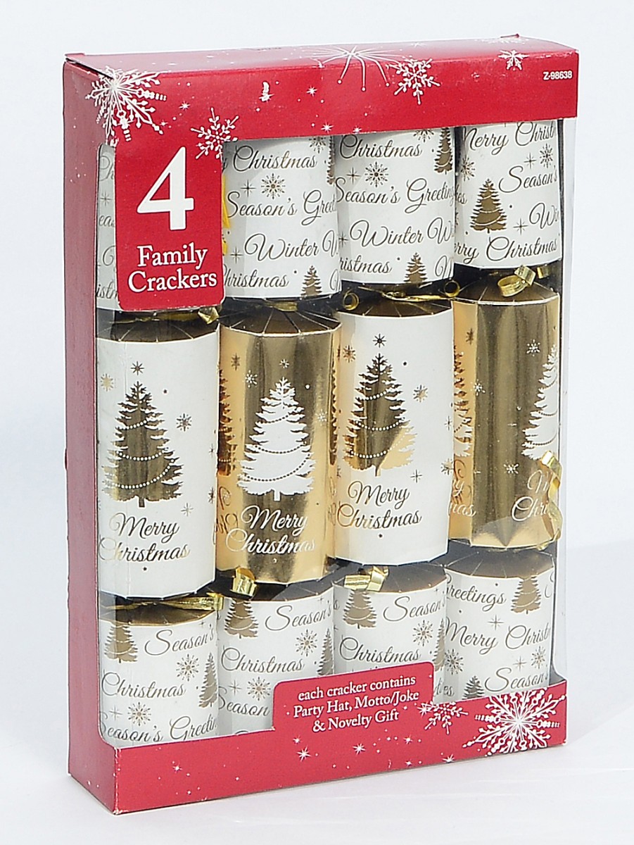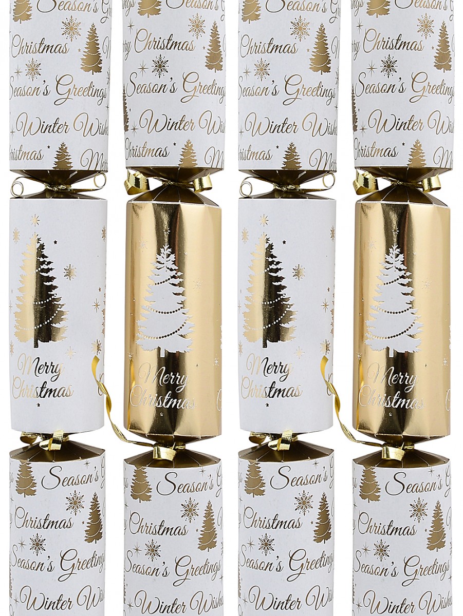 The White With Gold & Gold With White Christmas Tree Bon Bons is just the perfect Christmas item that would infuse your living and working spaces with heightened decorative appeal. It is sold as a set consisting of four bon bons each of which contains a hat, joke, gift, and a snap. It is the perfect, inexpensive way to keep the party merry and fun. All four comes in two different designs adding to the colourful mixture and appeal.