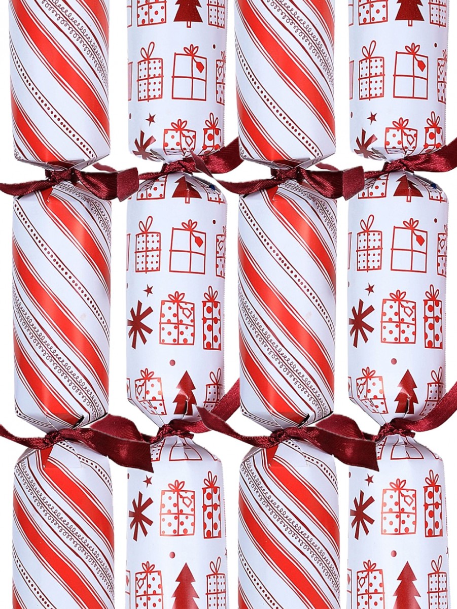 White With Red Candy Stripes & Gifts Christmas Cracker Bon Bons - 12 X 25cm